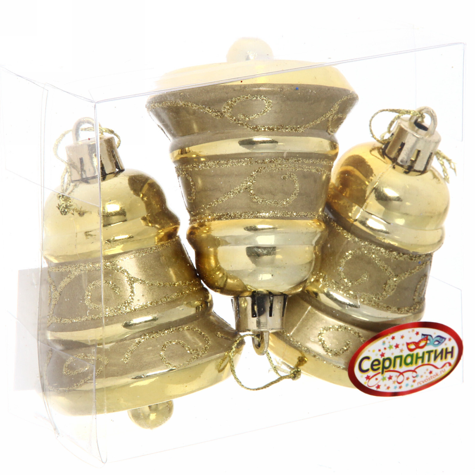 Каждый колокольчик имеет размер 6 см, что делает их компактными и удобными для размещения на ёлке. Золотистый цвет с блестящими узорами добавляет изысканности и праздничного настроения. Упаковка выполнена в прозрачном дизайне, что позволяет увидеть все детали и красоту игрушек.