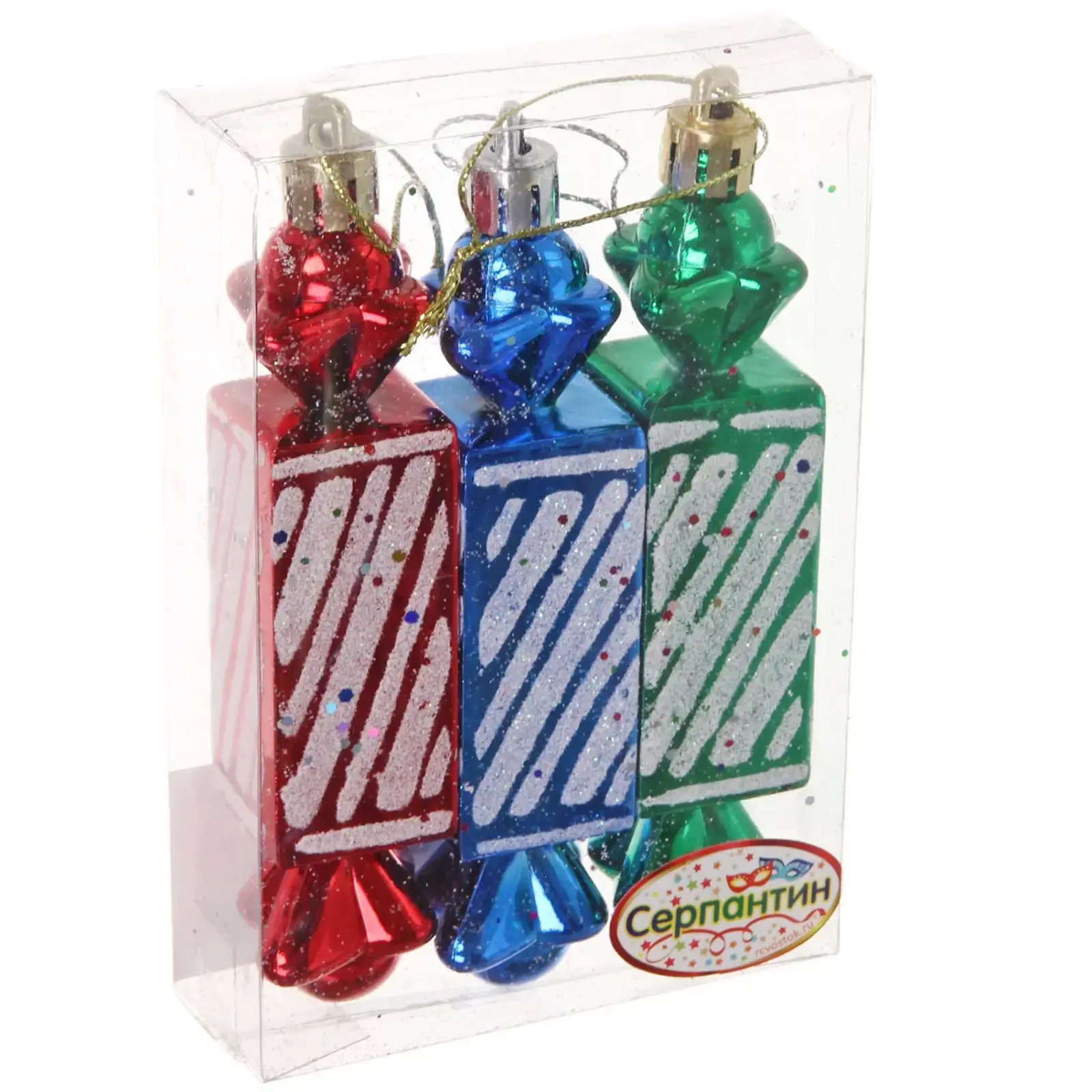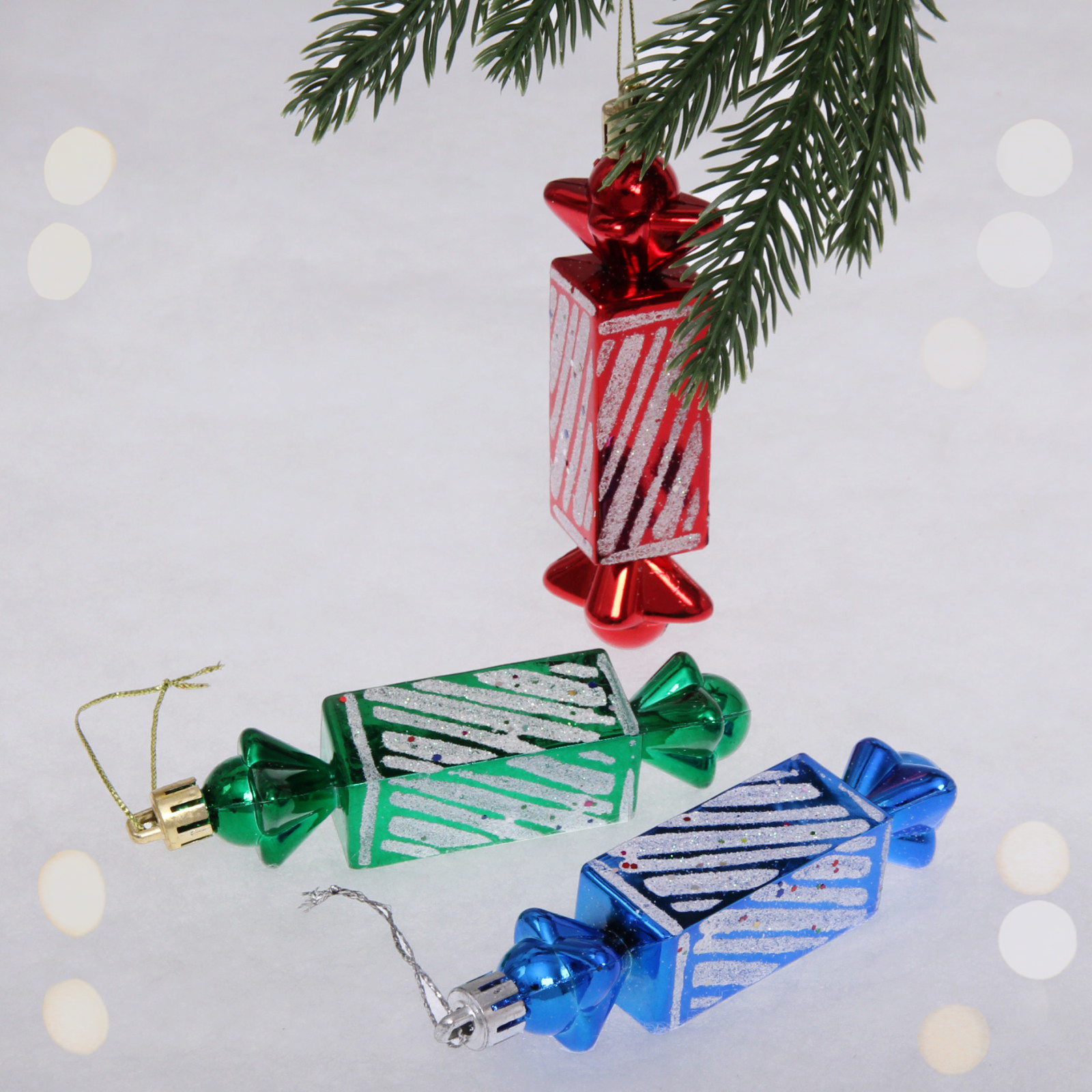 Ёлочные игрушки «Конфетки праздничные» 12 см (набор 3 шт), красный, зелёный, синий, пластик, для елки и декорирования