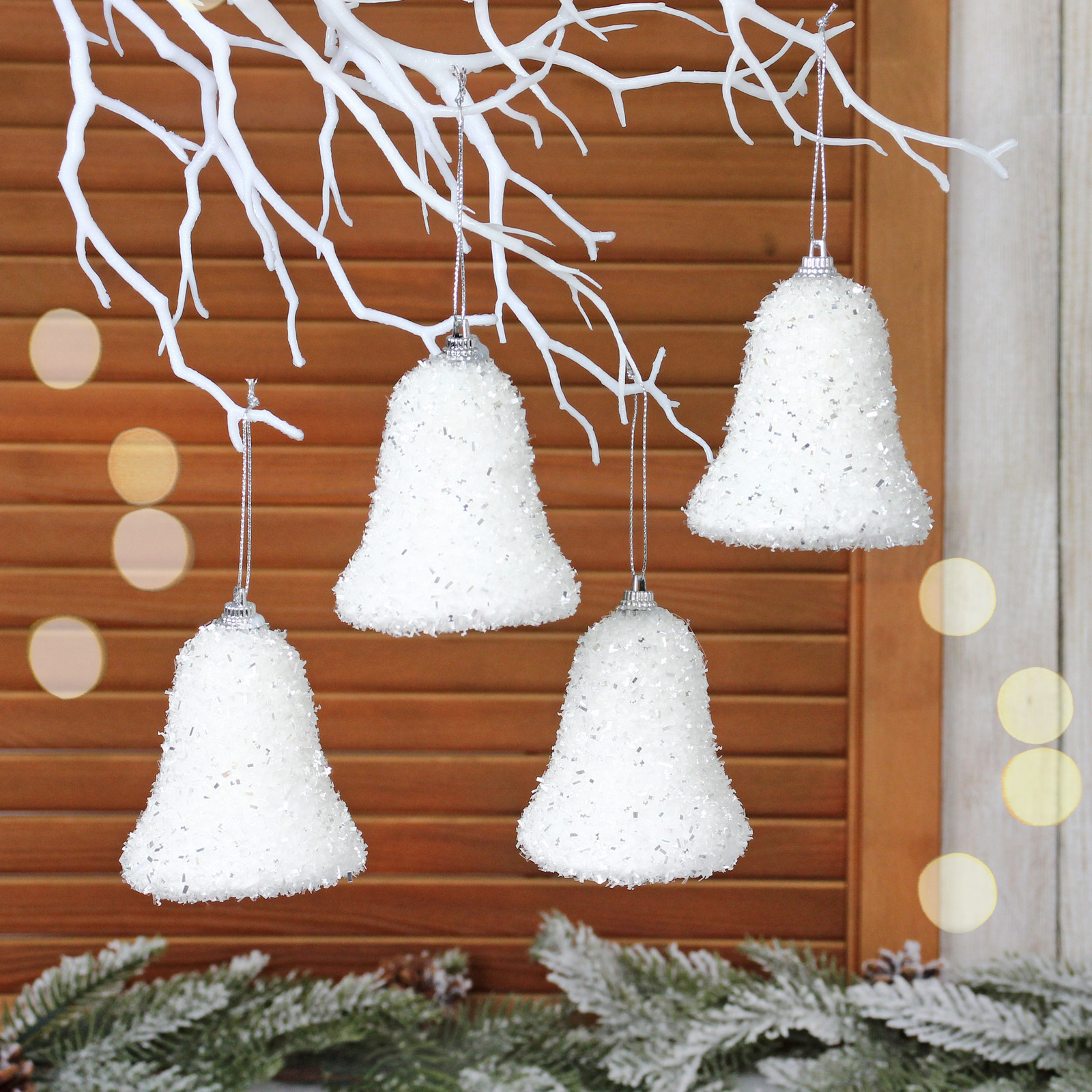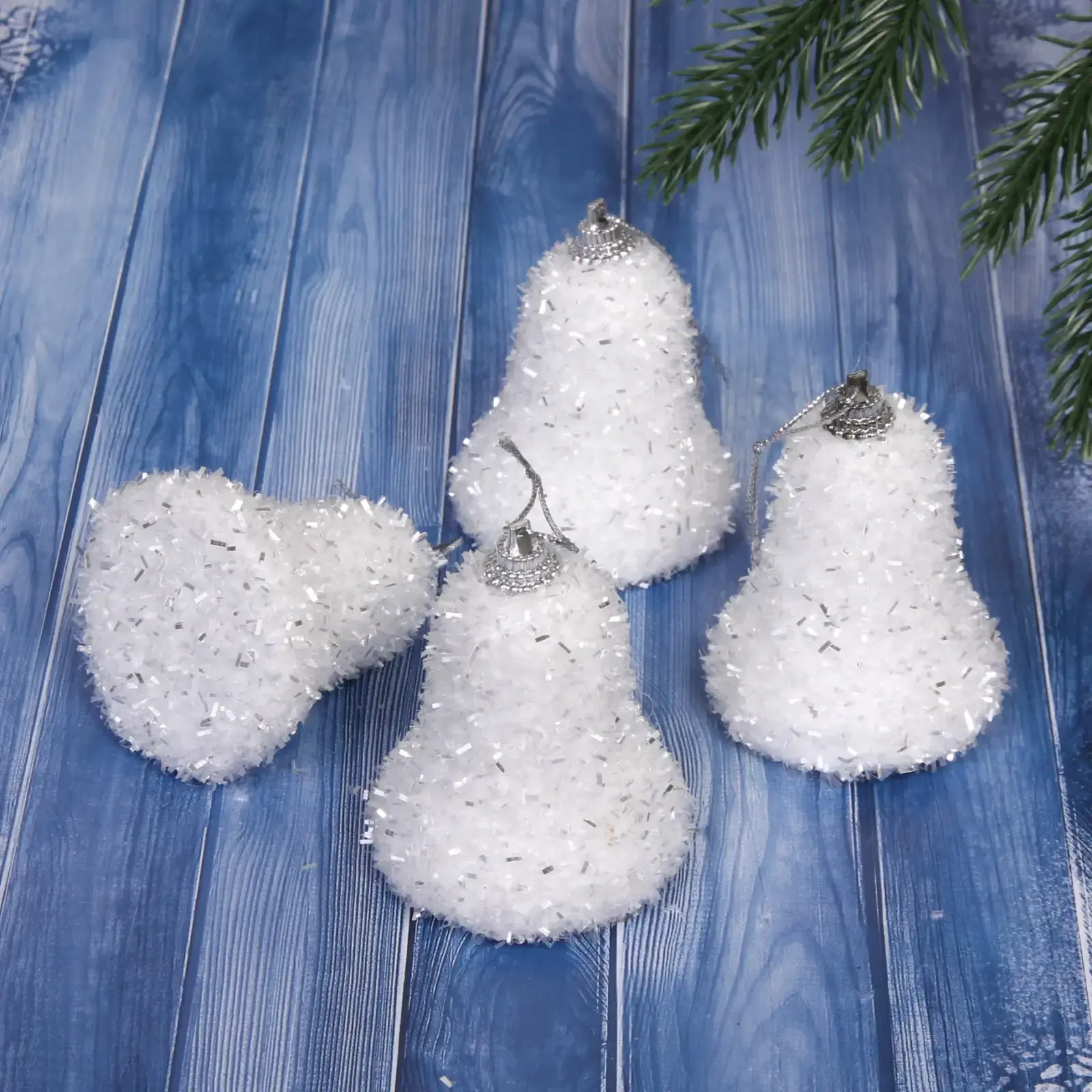 Эти изысканные ёлочные игрушки в форме колокольчиков добавят нотку элегантности и уюта в ваш новогодний декор. Их белый цвет с блестящими серебряными элементами создаёт атмосферу зимней сказки, а пушистая текстура с мелкими блестками привлекает внимание и радует глаз. Подарите себе и своим близким незабываемые моменты праздника с этими уникальными украшениями!