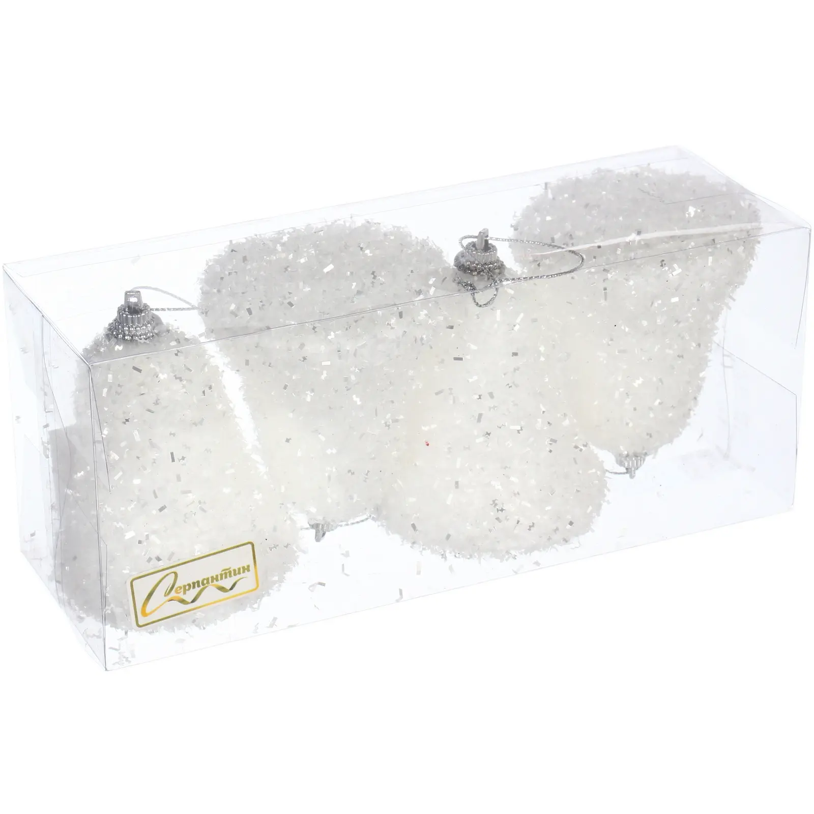 Размер каждой игрушки составляет 7 см, что делает их компактными и удобными для размещения на ёлке. Белый цвет с блестящей отделкой и пушистая текстура делают эти игрушки идеальными для создания праздничного настроения. Не упустите возможность сделать ваш Новый год незабываемым с ёлочными игрушками «Морозный иней»!