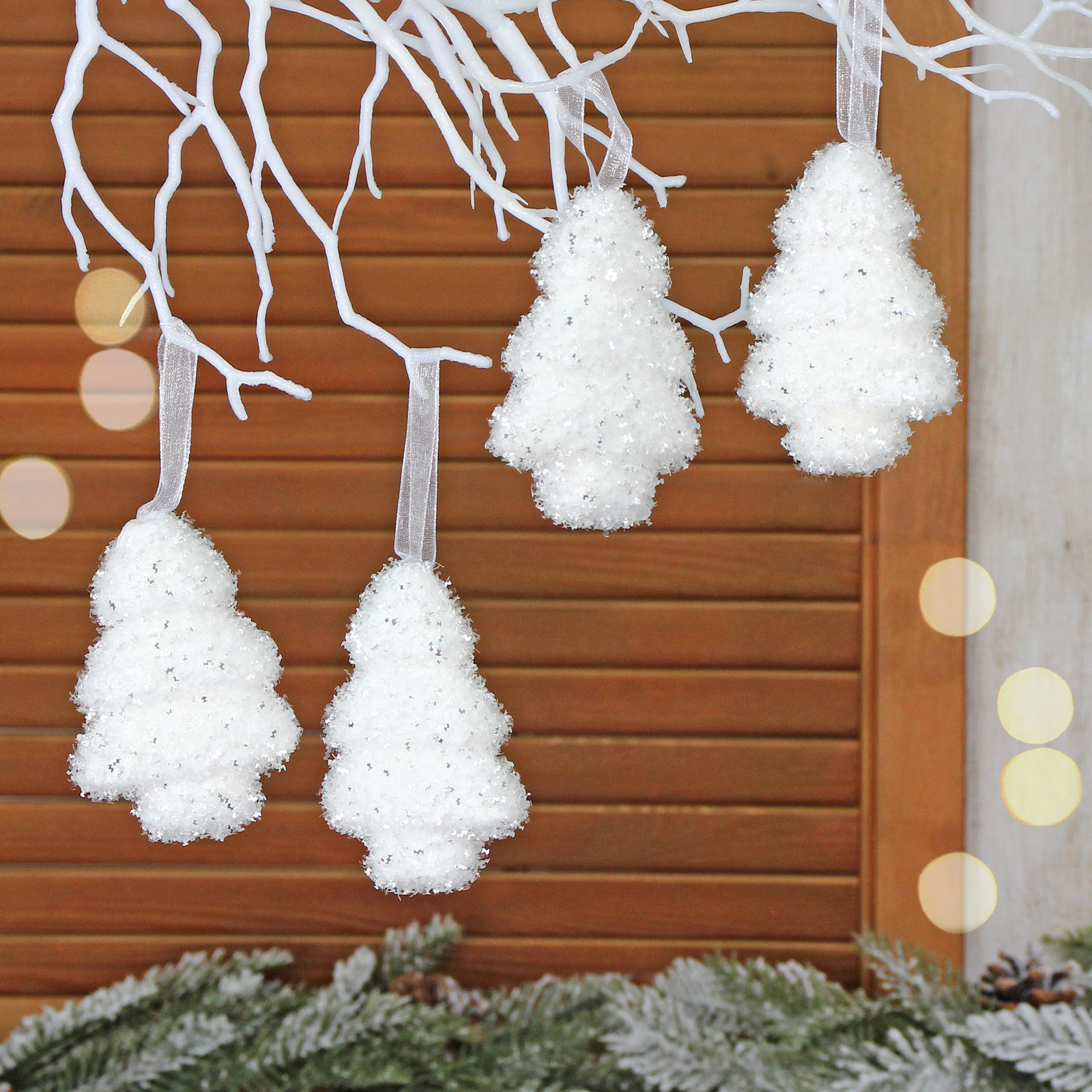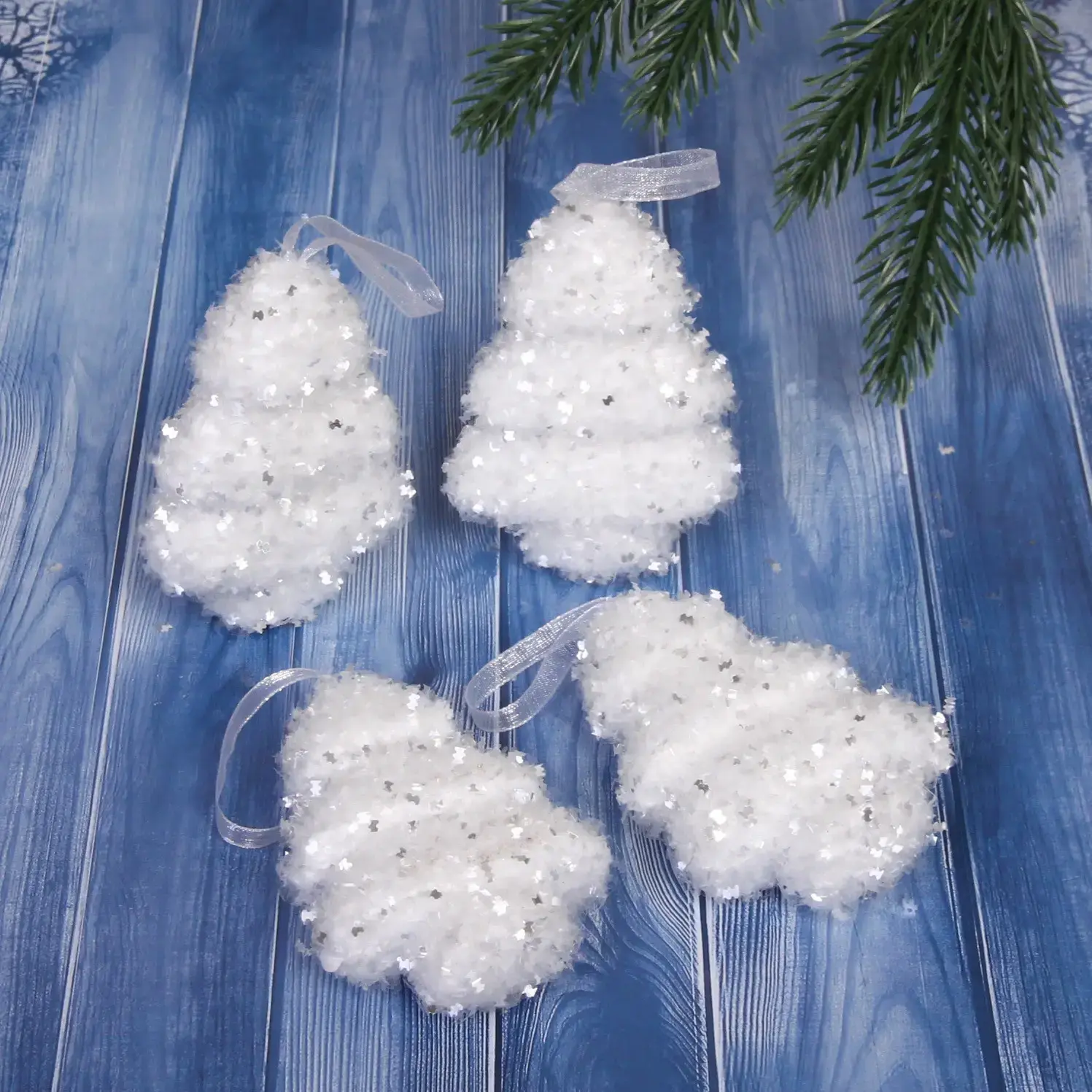 Эти изысканные ёлочные игрушки в виде снежных ёлочек добавят волшебства в ваш новогодний декор. Их белый цвет с блестящими серебристыми элементами создает эффект свежего снега, что делает их идеальными для создания зимней сказки в вашем доме.