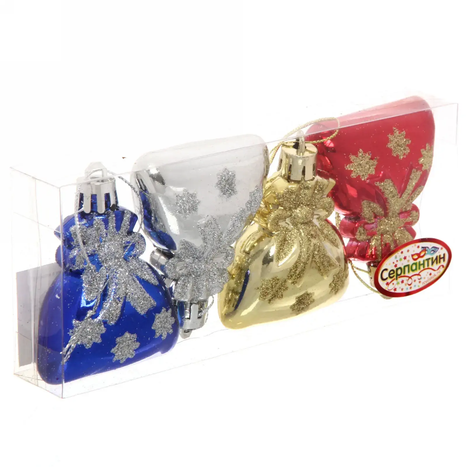 Ёлочные игрушки «Подарочек в мешочке» 5см микс цветов (набор 4шт), пластик, для елки и декорирования