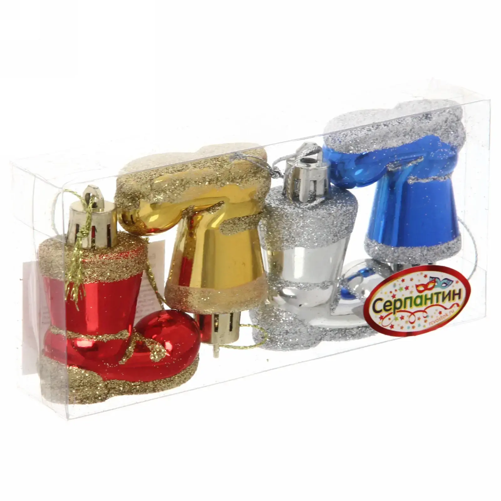 Эти яркие ёлочные игрушки в форме сапожков добавят волшебства в ваш новогодний декор. С их помощью вы сможете легко украсить ёлку и создать уютную атмосферу в вашем доме. Игрушки выполнены из качественного пластика и имеют блестящую поверхность, что делает их особенно привлекательными. Микс цветов — красный, золотой, серебристый и синий — позволит вам разнообразить оформление и подобрать идеальный вариант для любого стиля.