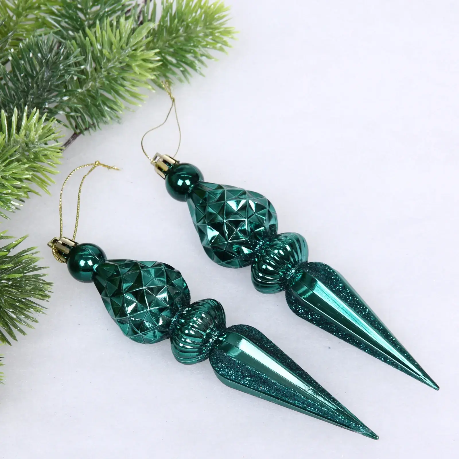Эти изумрудные ёлочные игрушки добавят яркие акценты в ваш новогодний декор. Их блестящая поверхность и уникальная форма создают эффект волшебства, который привлечет внимание всех гостей. Подвески идеально подойдут для украшения ёлки, а также могут использоваться для декорирования интерьера в праздничные дни.