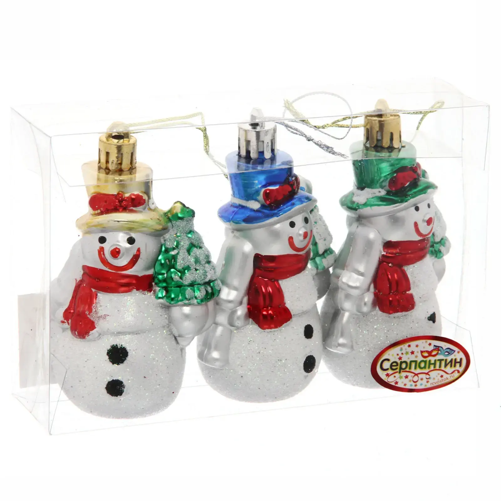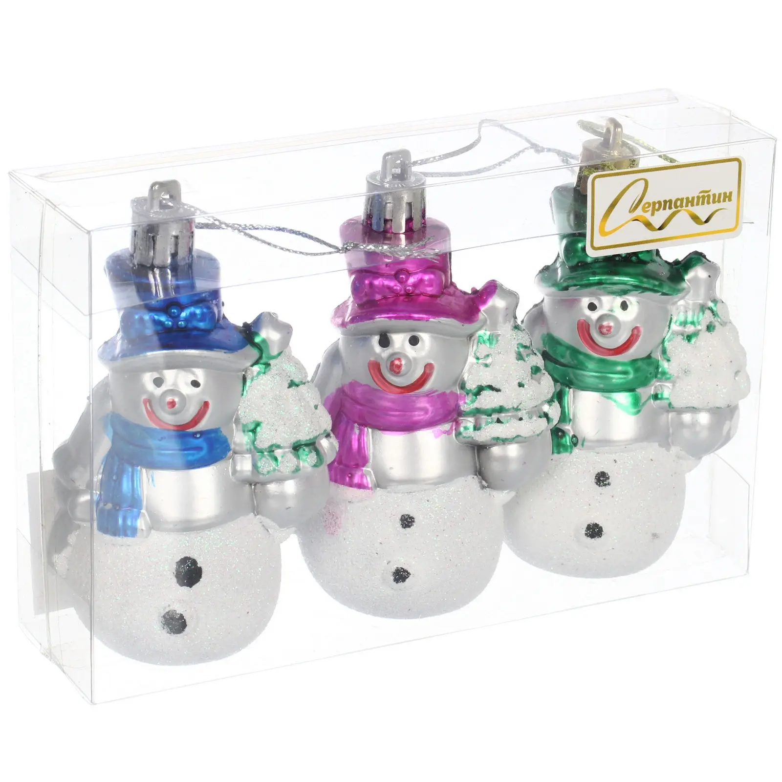Создайте атмосферу волшебства на вашей ёлке с очаровательными снеговиками из серии 'Серпантин'. Эти трогательные персонажи моментально привлекают внимание своим серебристым блеском и яркими аксессуарами.