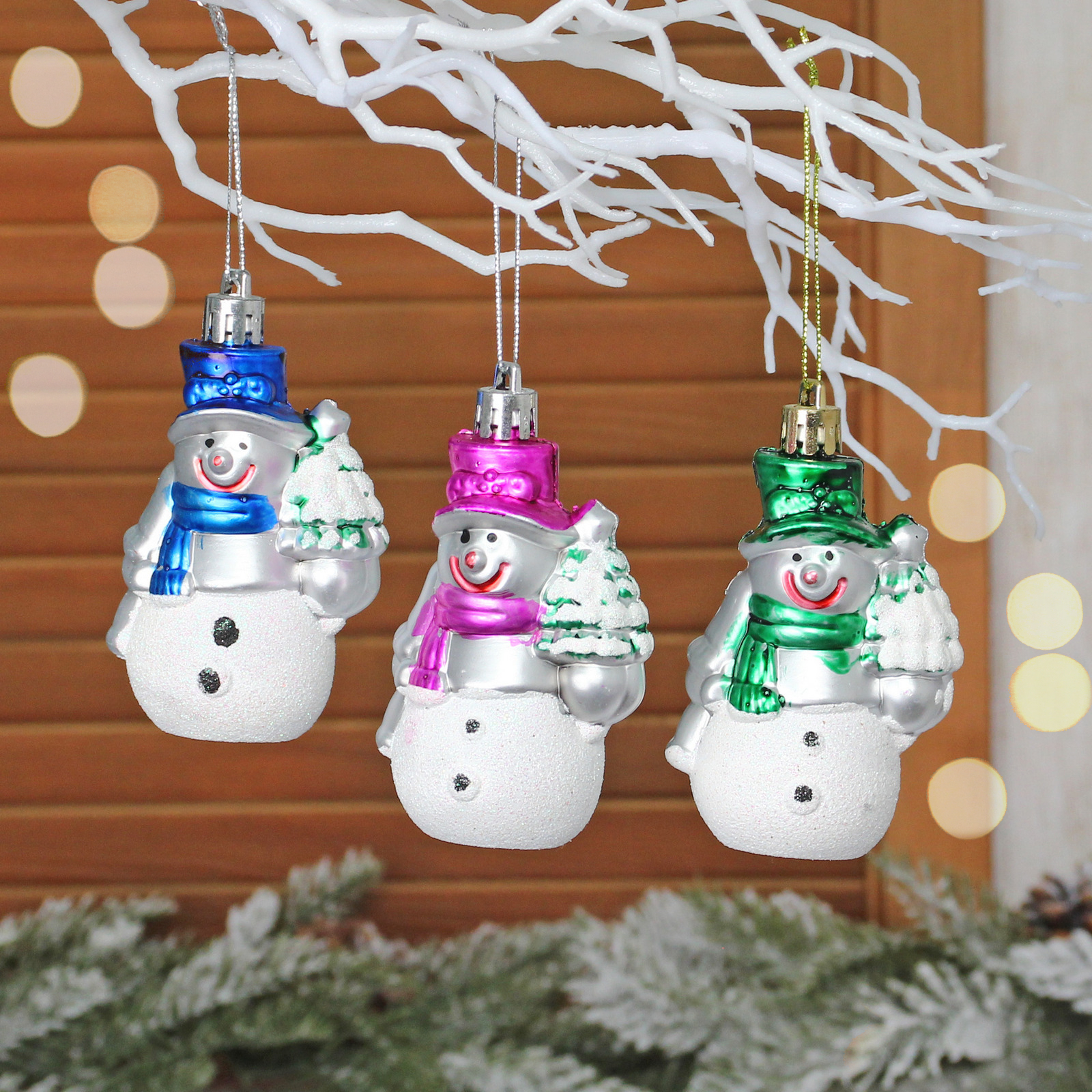 Ёлочные игрушки «Снеговичок с елочкой» 7,5*6,5см (набор 3шт), пластик, для елки и декорирования