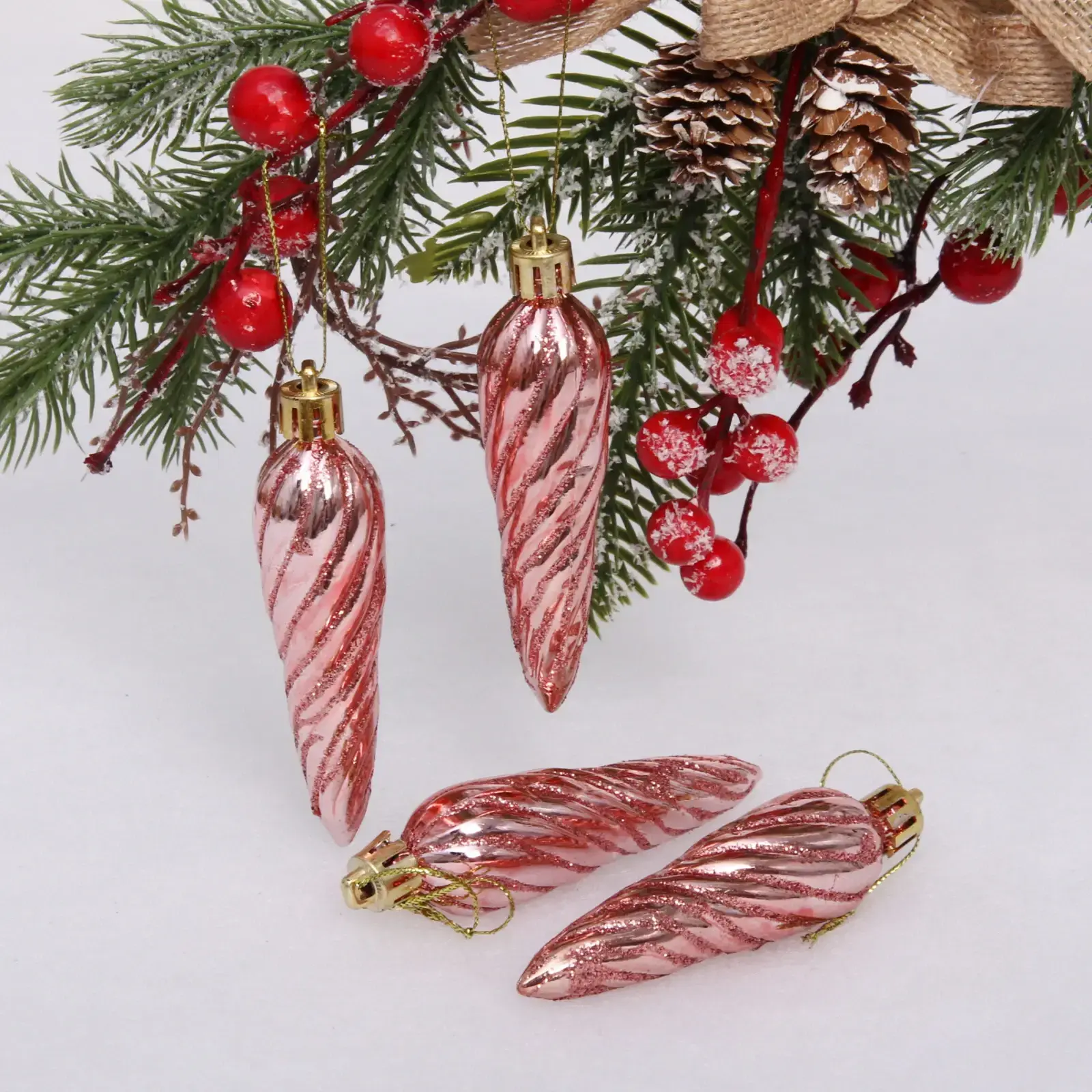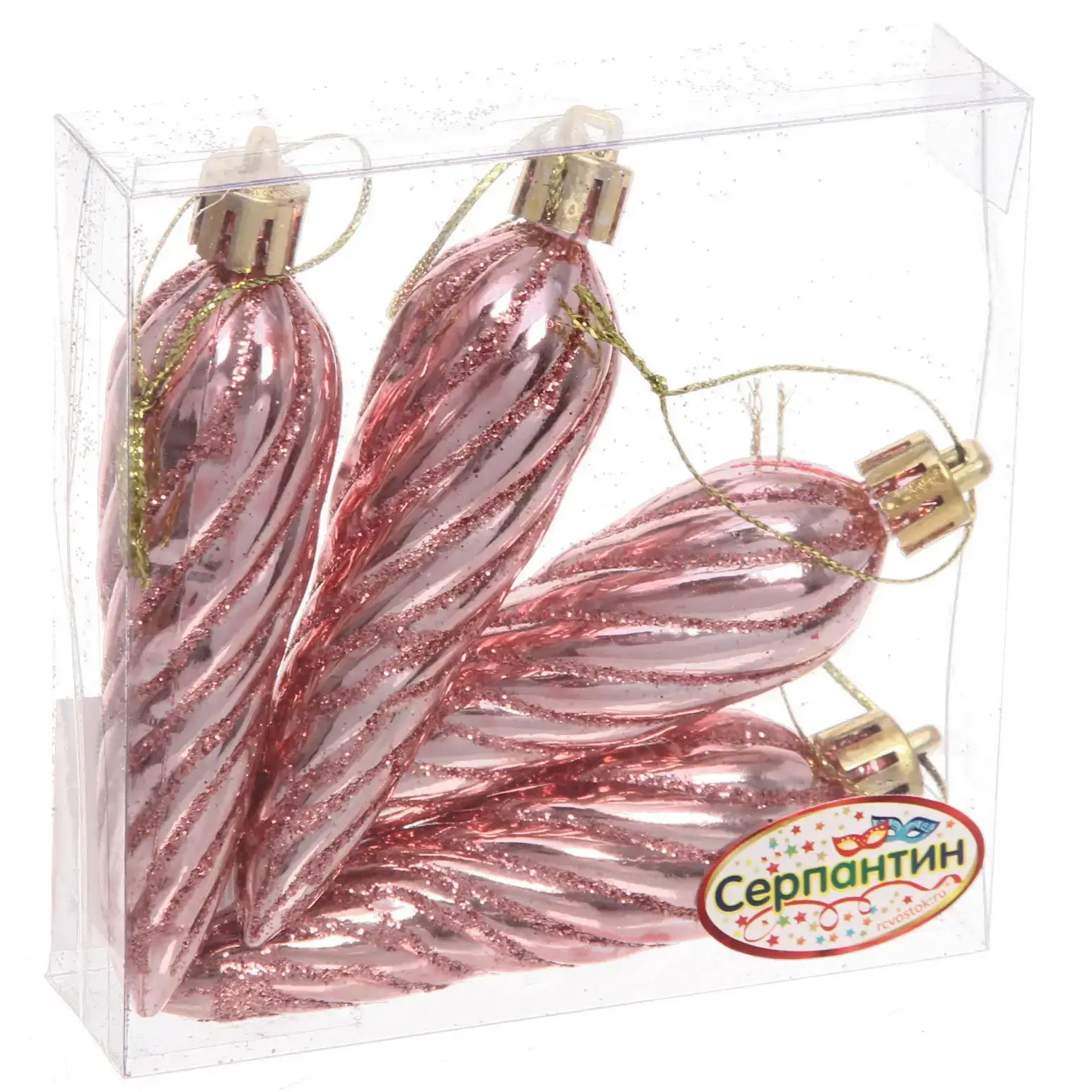 Набор из четырёх стильных ёлочных игрушек 'Сосулька спиралька' добавит волшебного блеска вашему новогоднему декору. Благородное сочетание розового и золотого создаст атмосферу праздничной роскоши.