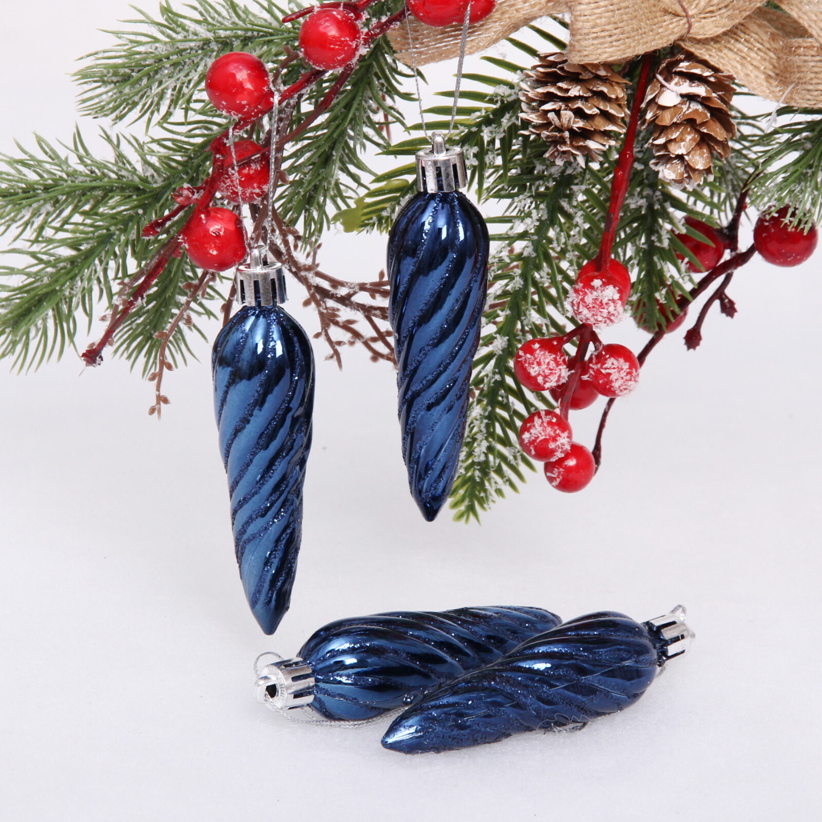 Ёлочные игрушки «Сосулька спиралька» 8,5см (набор 4шт), сапфир, пластик, для елки и декорирования
