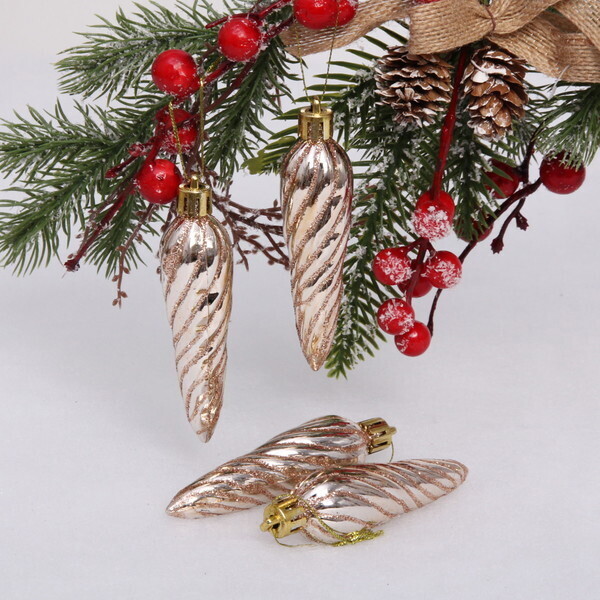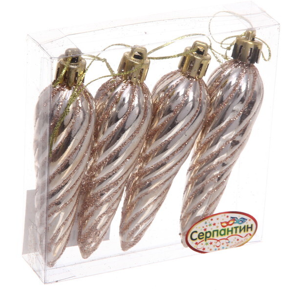 Ёлочные игрушки «Сосулька спиралька» 8,5см (набор 4шт), шампань, пластик, для елки и декорирования