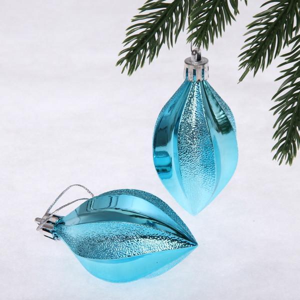 Ёлочные игрушки 'Таинственное очарование', капля 8см, голубой, набор 2шт