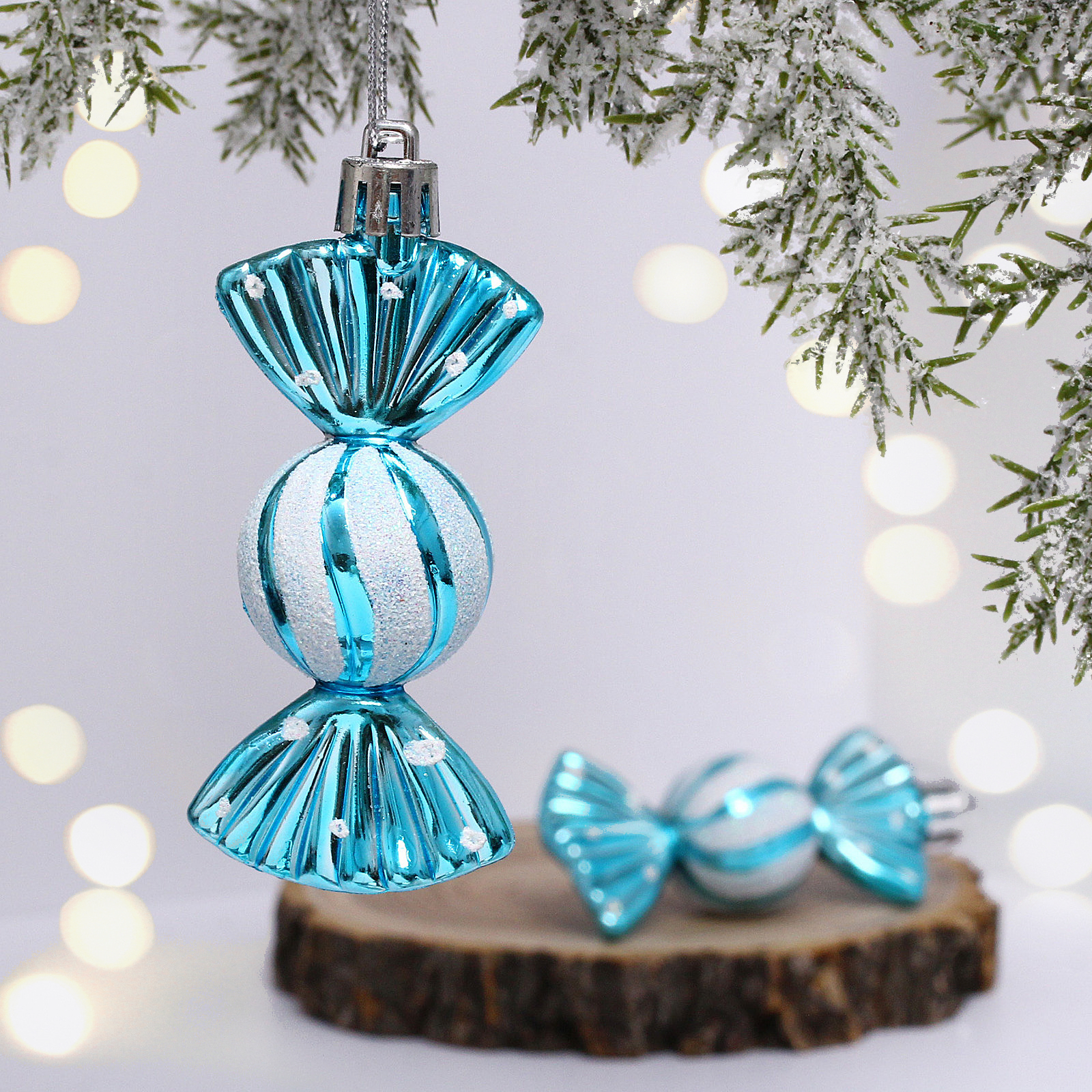 Ёлочные игрушки «Таинственное очарование» Конфетки 8 см (набор 2шт), голубой, пластик, для елки и декорирования