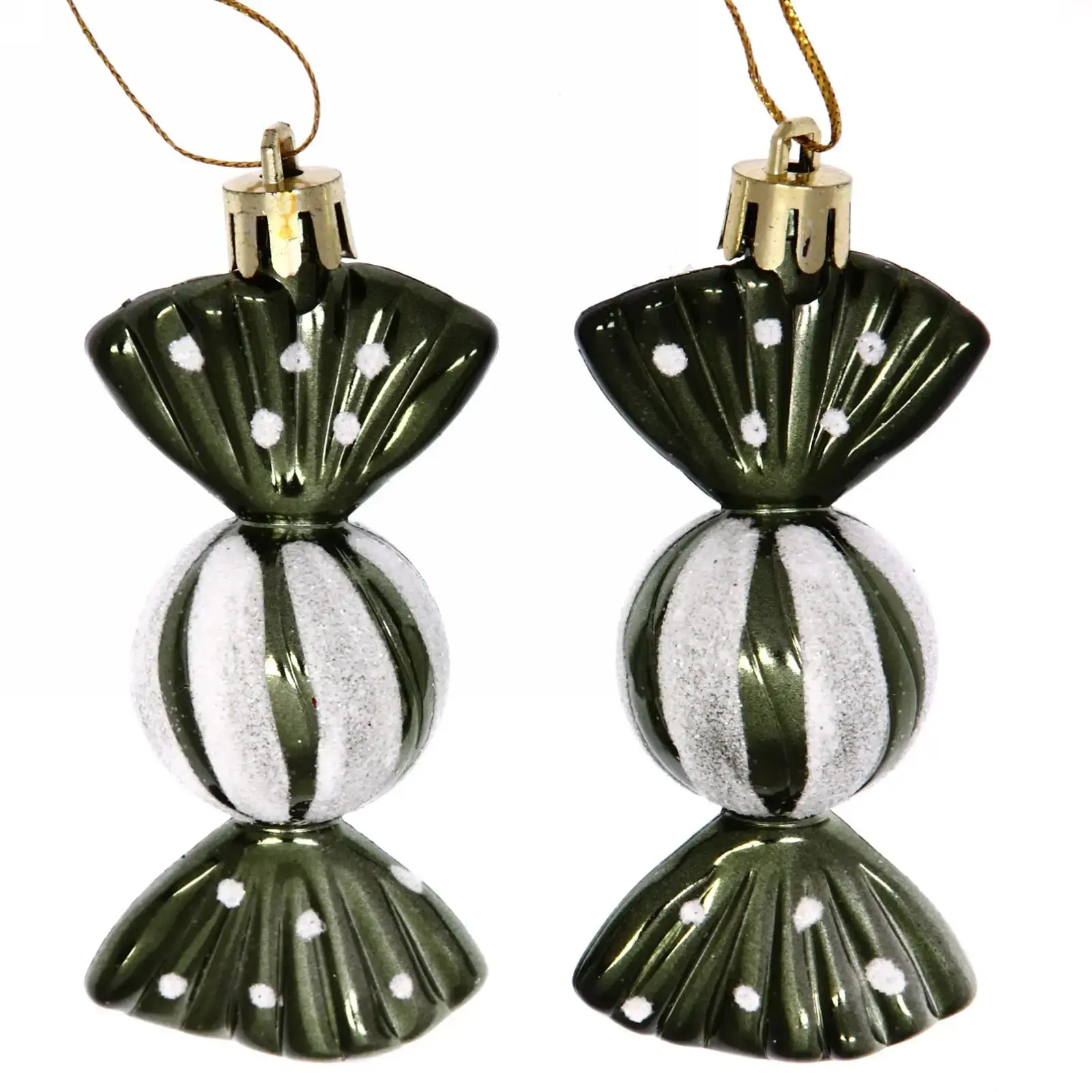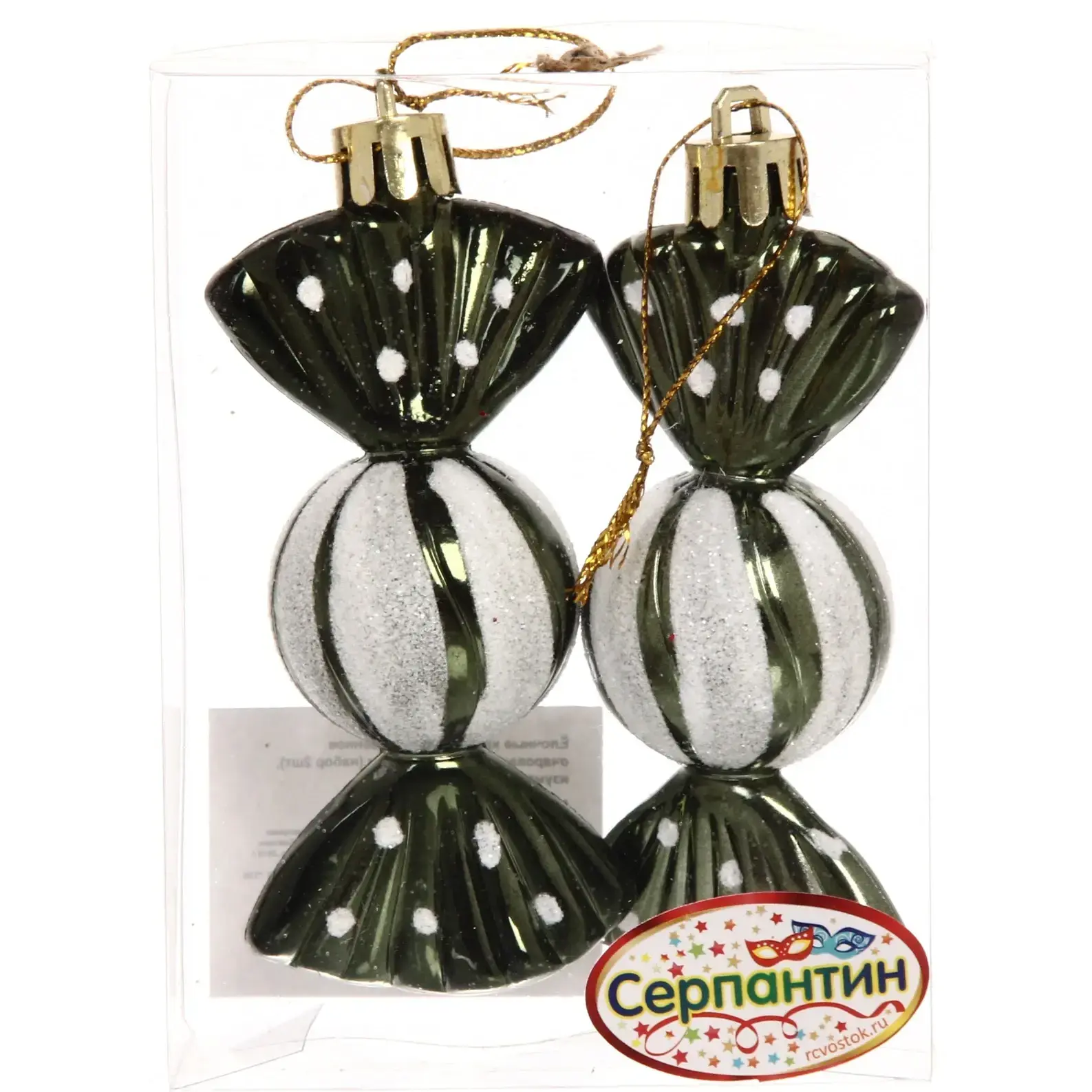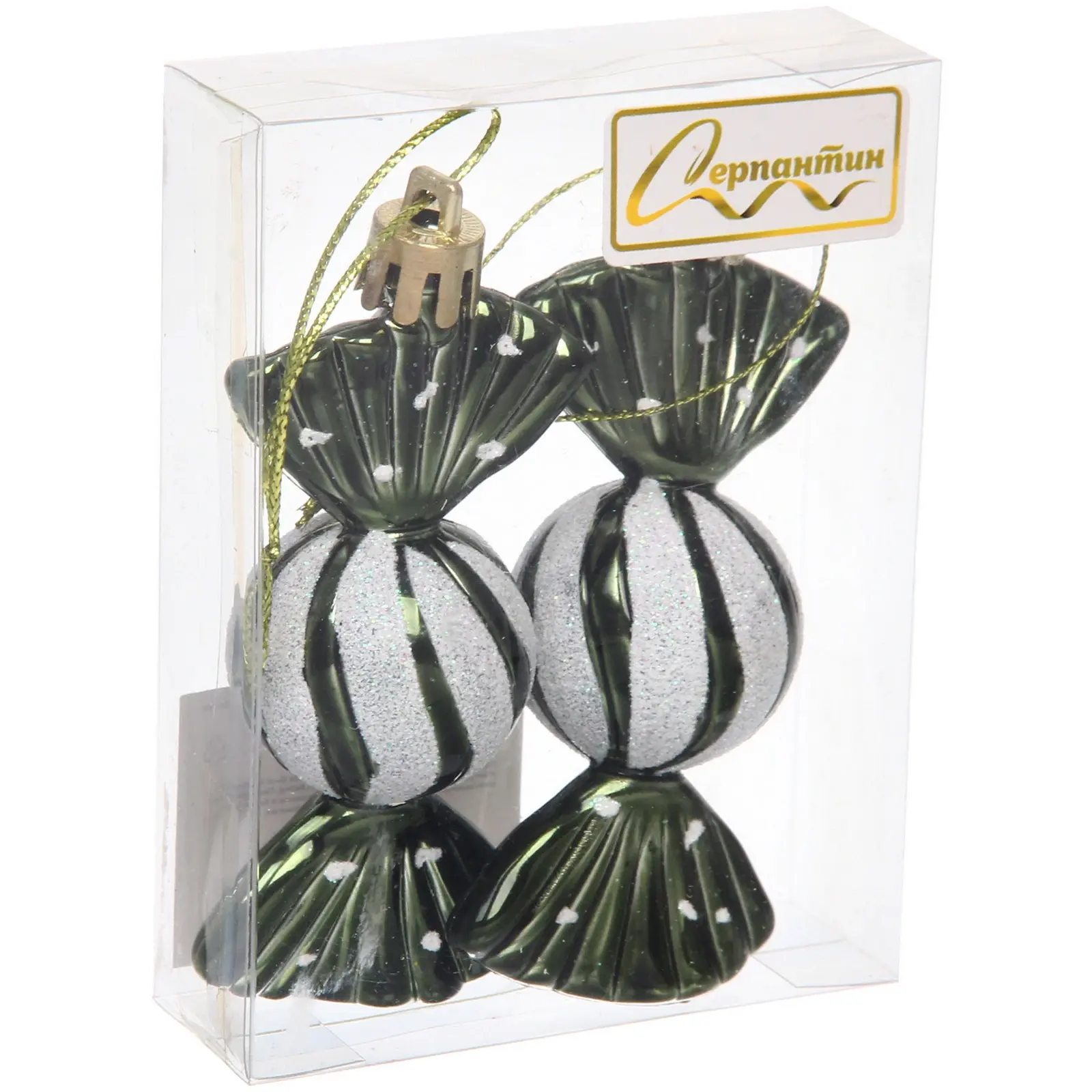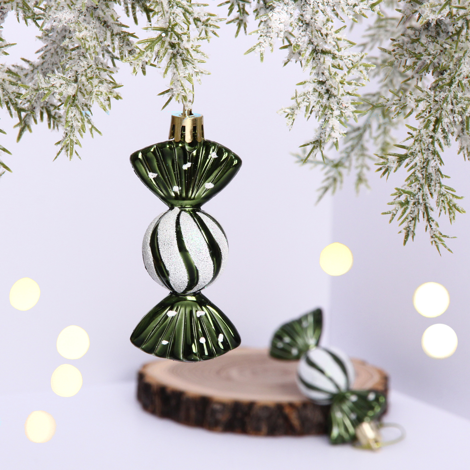 Эти ёлочные игрушки в виде конфет добавят особое очарование вашему празднику. Выполненные в изумрудном цвете с белыми точками, они станут ярким акцентом на вашей новогодней ёлке. Каждая игрушка имеет размер 8 см и упакована в стильную прозрачную коробку, что делает их идеальными для подарка или украшения вашего дома.