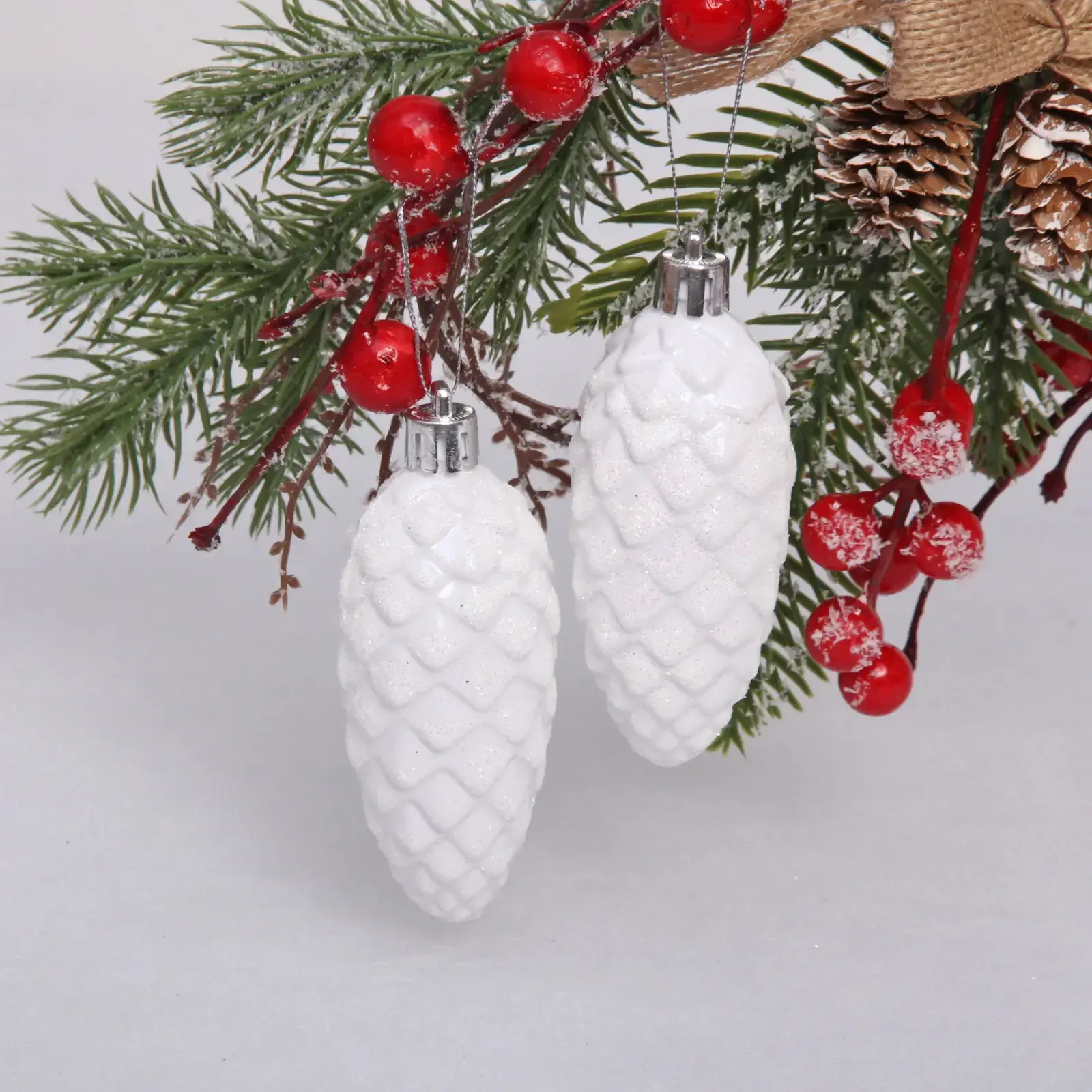 Ёлочные игрушки «Таинственное очарование» Шишки 9 см (набор 2шт), белый, пластик, для елки и декорирования