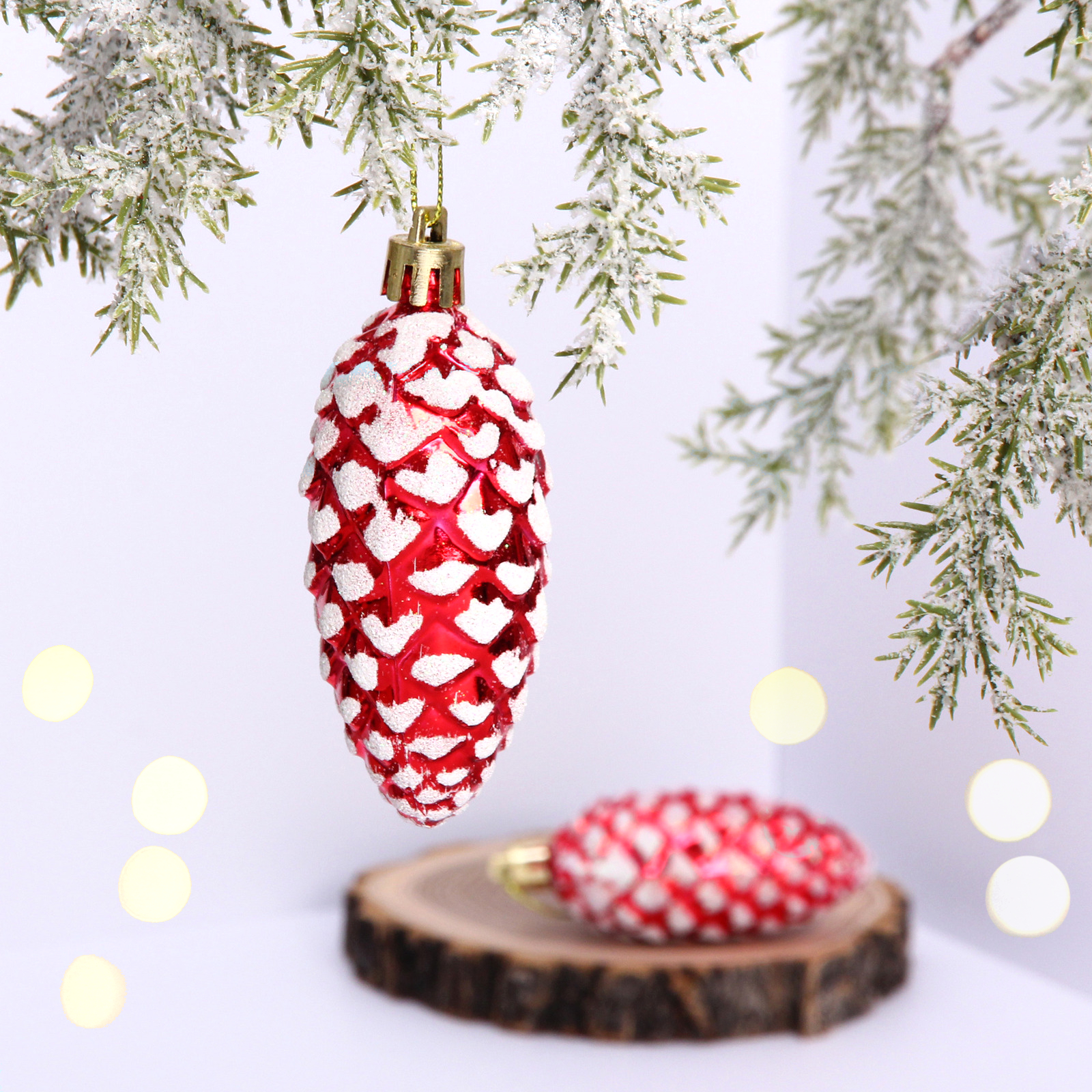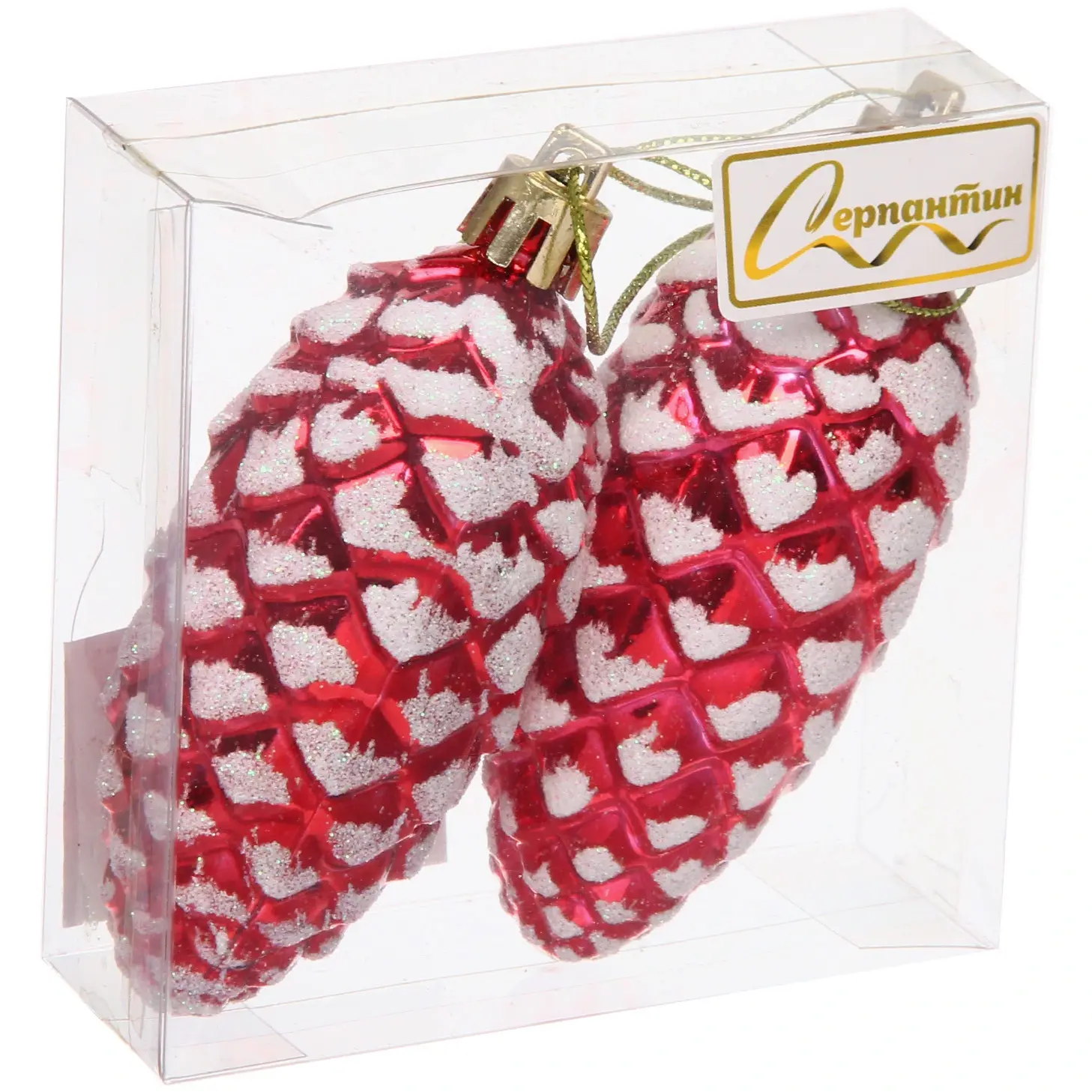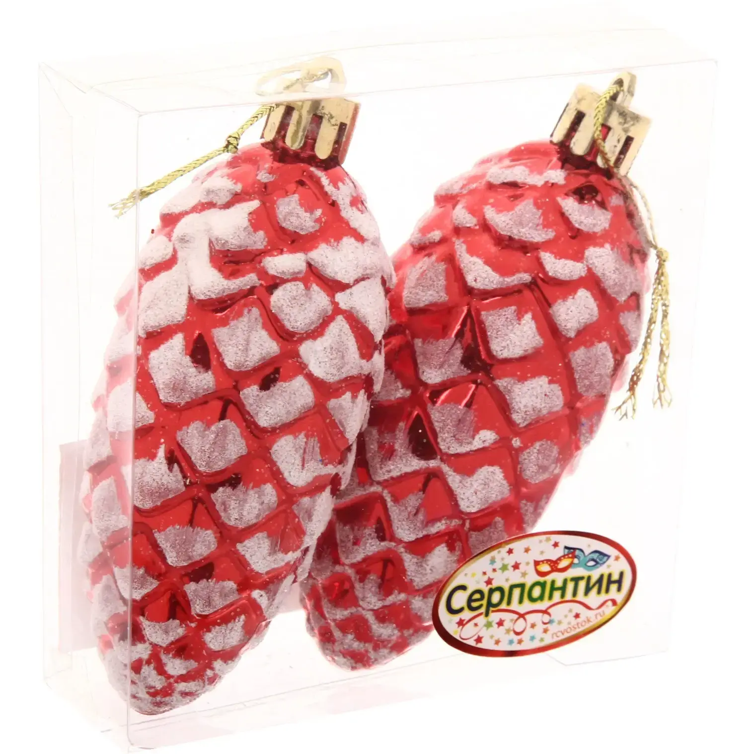 Ёлочные игрушки «Таинственное очарование» Шишки 9 см (набор 2шт), красный, пластик, для елки и декорирования