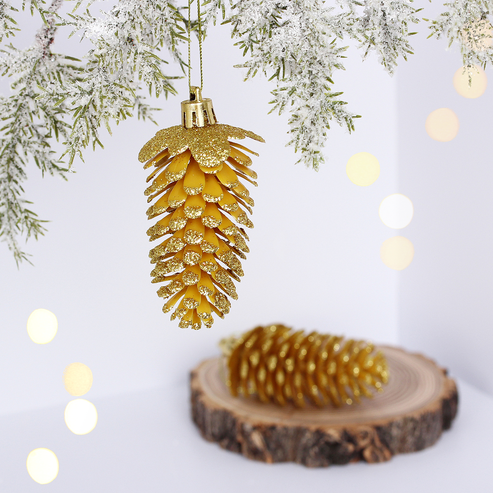 Пластиковые шишки не бьются и сохраняют свой привлекательный вид долгие годы. Размер 9 см оптимален для создания гармоничного новогоднего декора – игрушки заметны, но не перегружают ветки елки. Золотистый цвет универсален и сочетается с любыми оттенками гирлянд и других украшений.