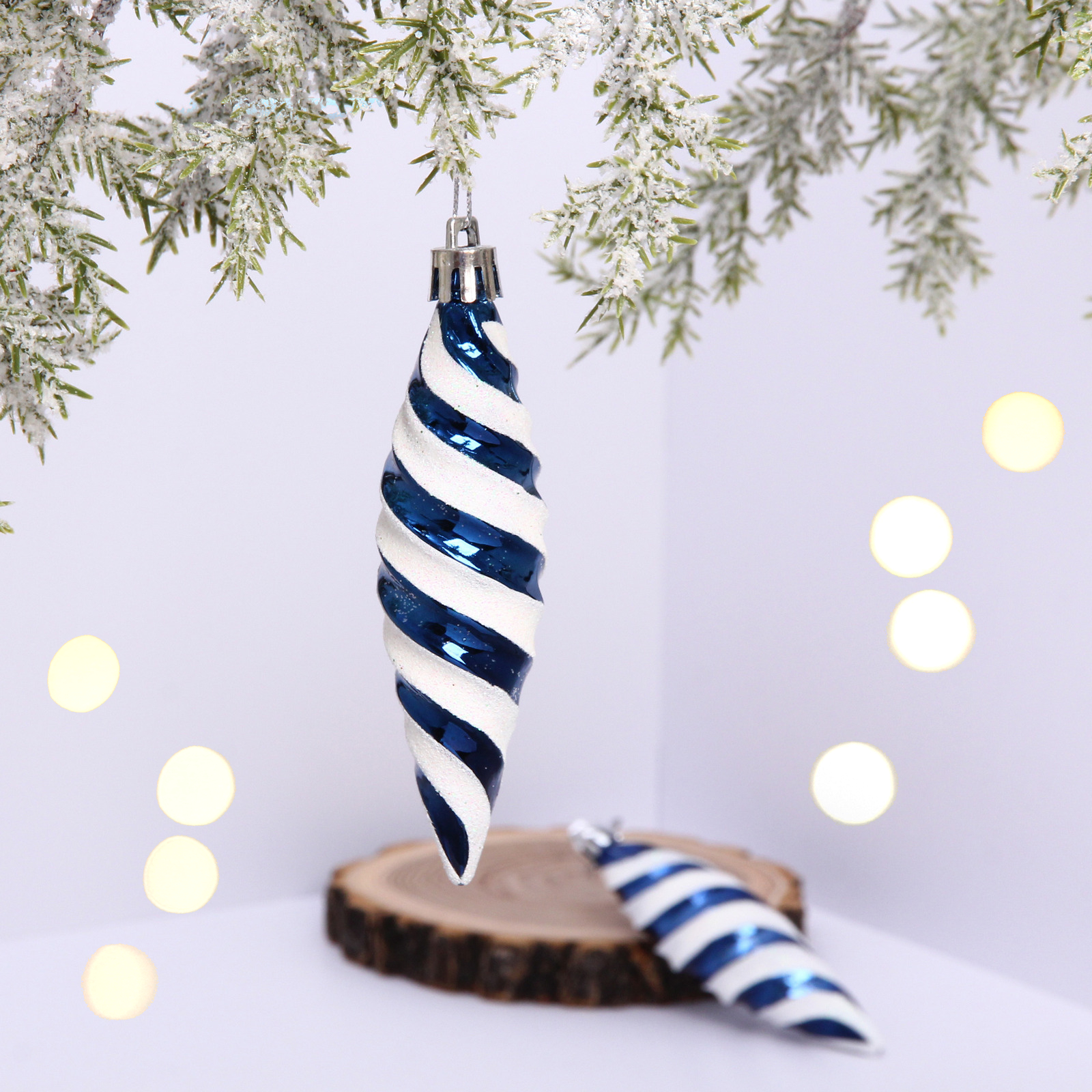 Элегантные ёлочные игрушки 'Таинственное очарование' в форме сосулек наполнят ваш дом праздничной атмосферой. Их благородный сапфировый цвет и мерцающие спиральные узоры создают неповторимый эффект зимней сказки.