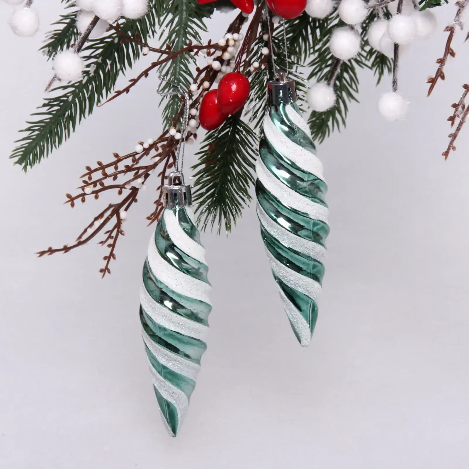 Эти украшения идеально подходят для декорирования новогодней елки, а также могут использоваться для оформления интерьера. Благодаря своей спиралевидной форме и блестящей отделке, сосульки привлекут внимание и создадут праздничное настроение. Они легко подвешиваются благодаря металлическим петелькам, что делает процесс декорирования простым и удобным.