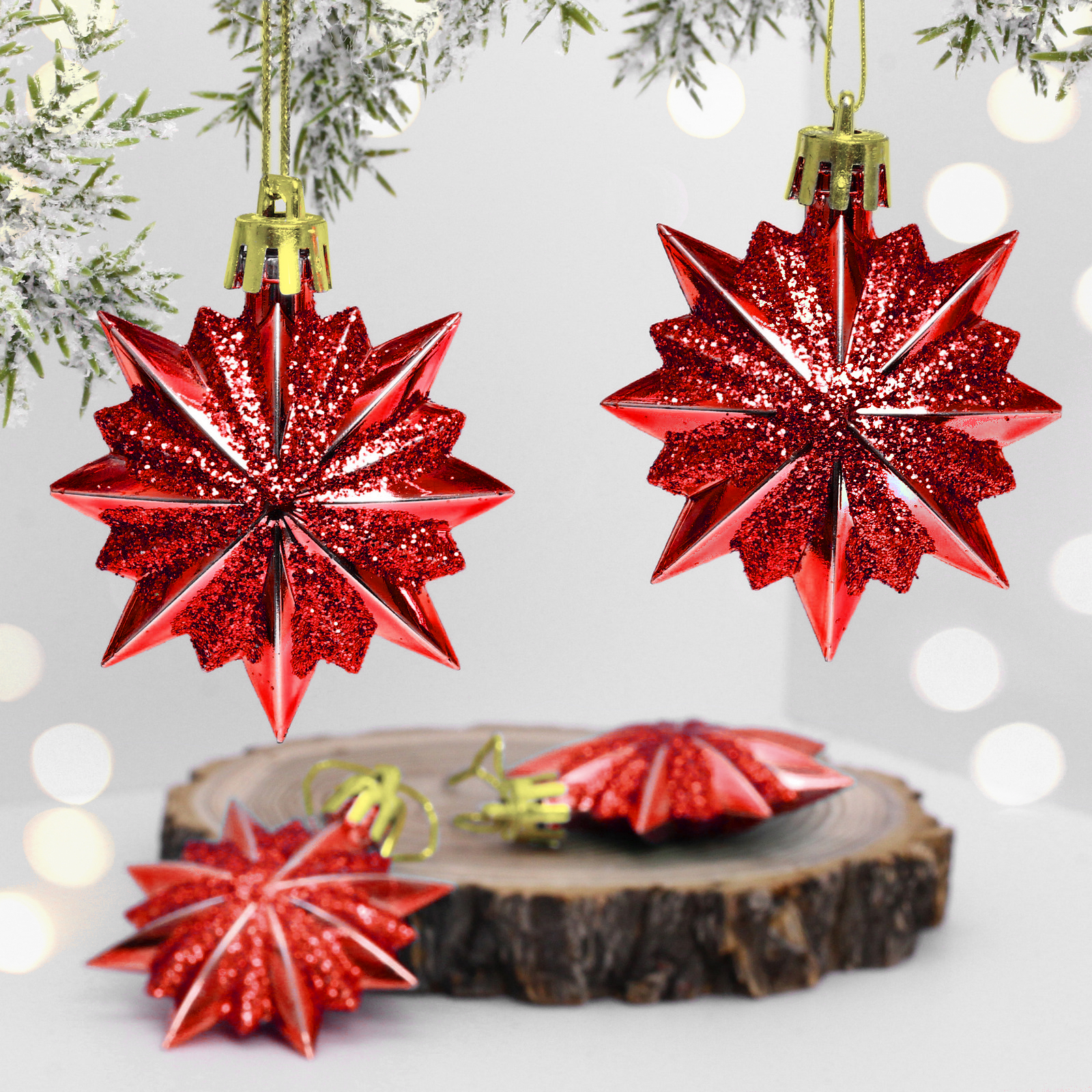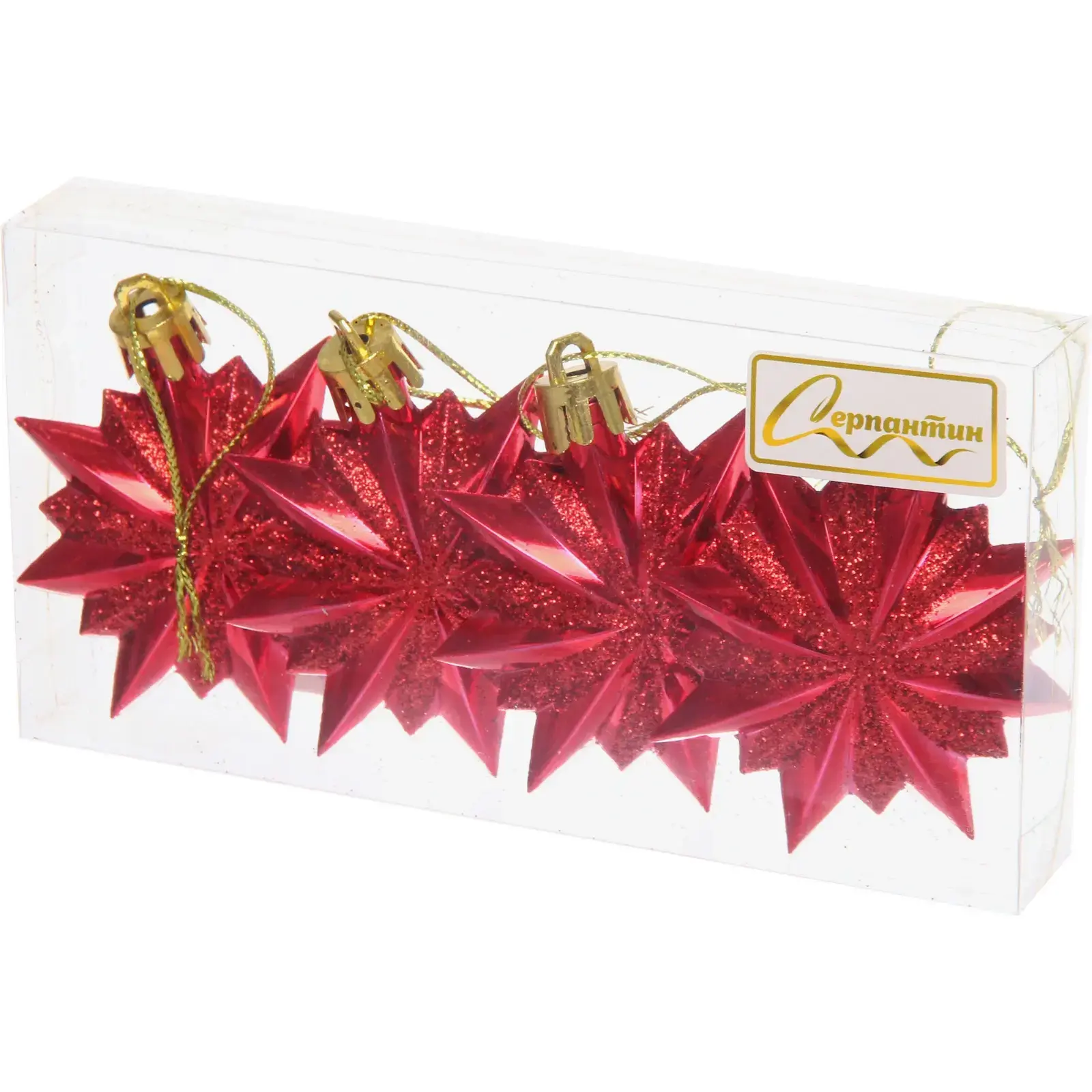 Ёлочные игрушки «Таинственное очарование» Звезда остроконечная 6 см (набор 4 шт), красный, пластик, для елки и декорирования