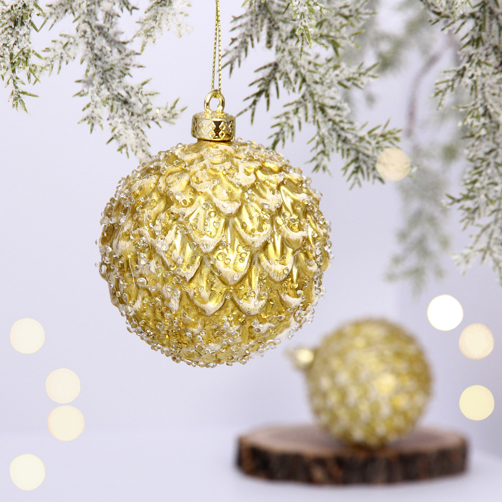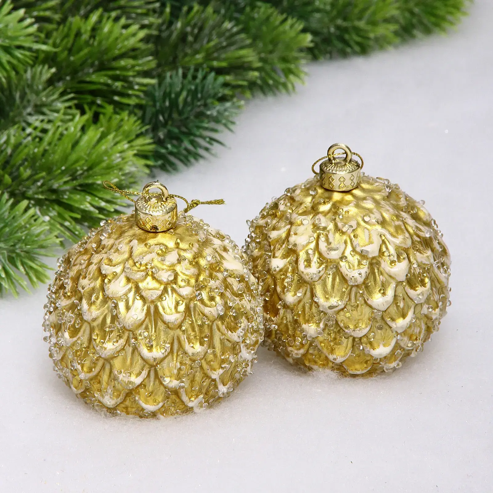 Ёлочные игрушки VERSAILLES «Еловый шар» 8 см (набор 2 шт), Золото, пластик, для елки и декорирования