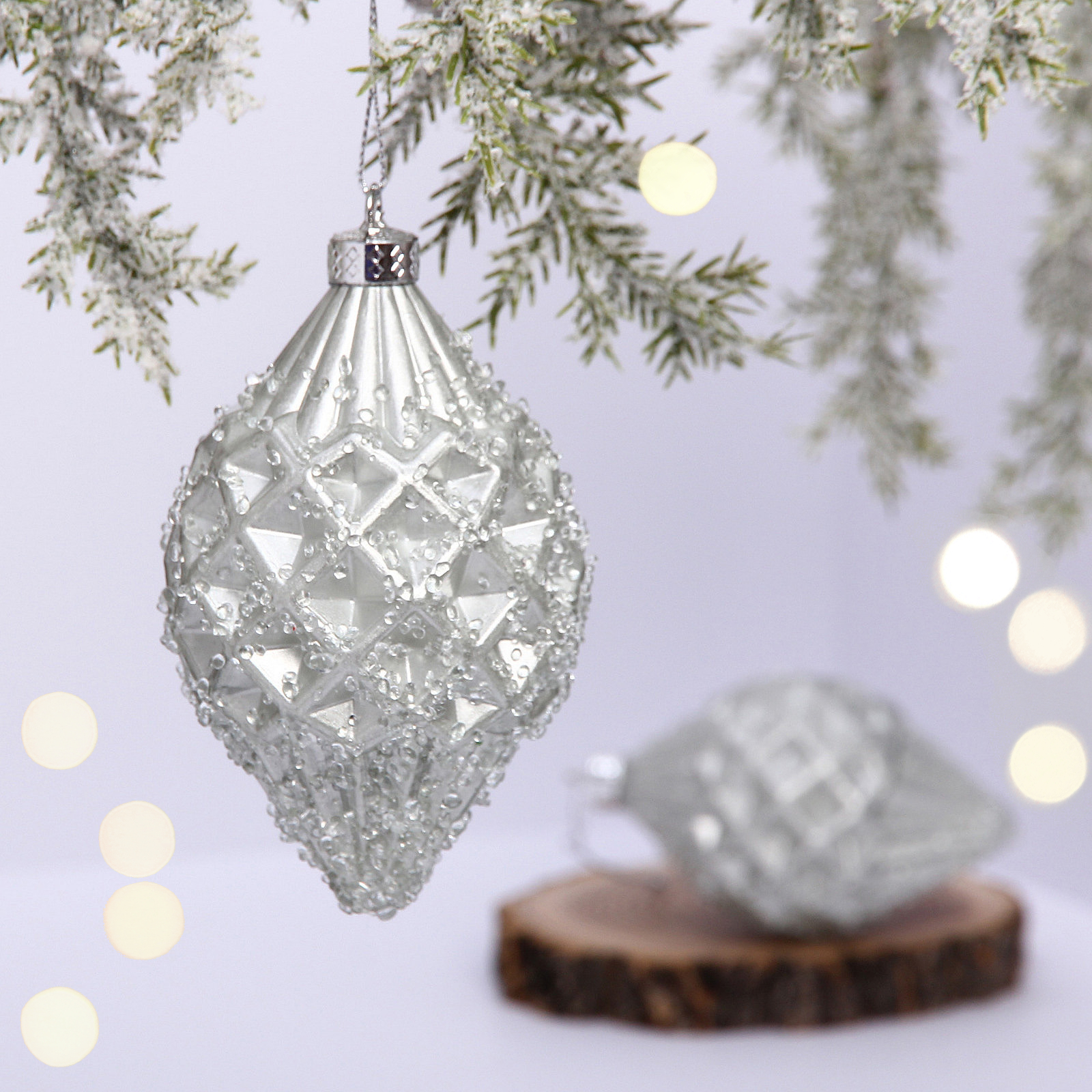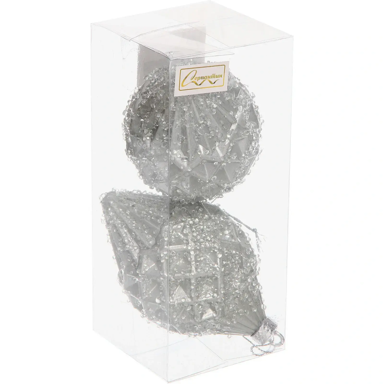 Создайте атмосферу праздника с премиальными ёлочными игрушками "Ледяная капля". Две стильных серебристых игрушки в форме вытянутых капель придадут вашей ёлке особый шарм и элегантность.