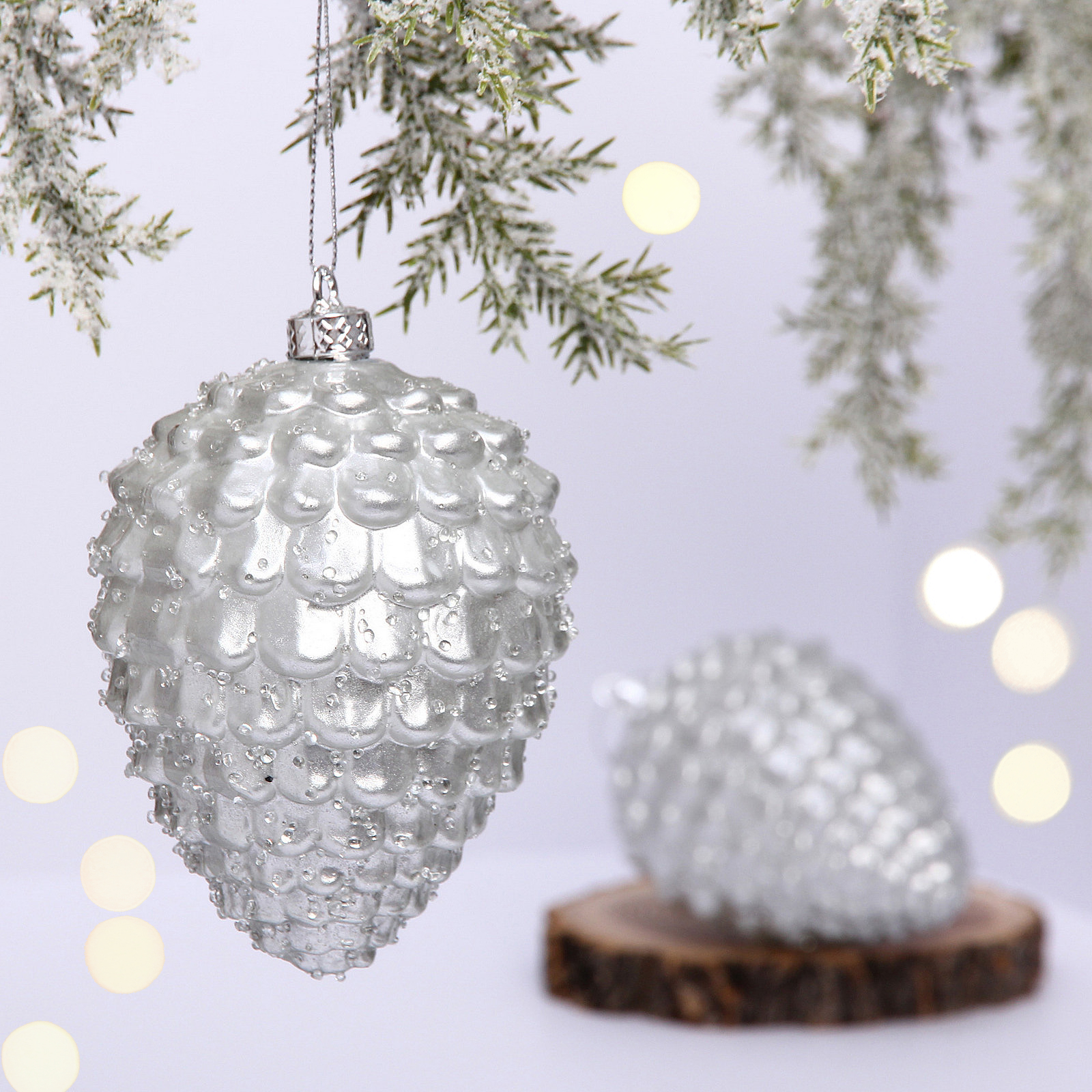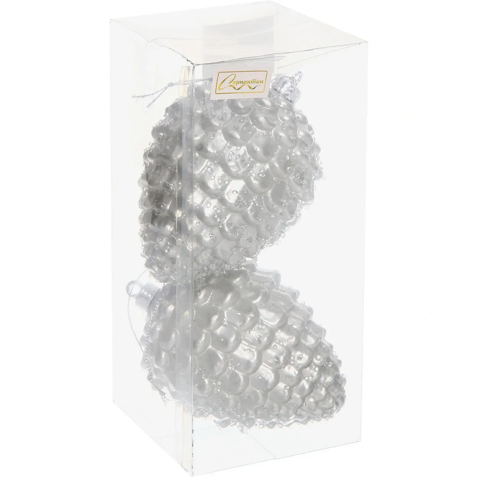 Ёлочные игрушки VERSAILLES «Лесные шишки» 13*8 см (набор 2 шт), Серебро, пластик, для елки и декорирования
