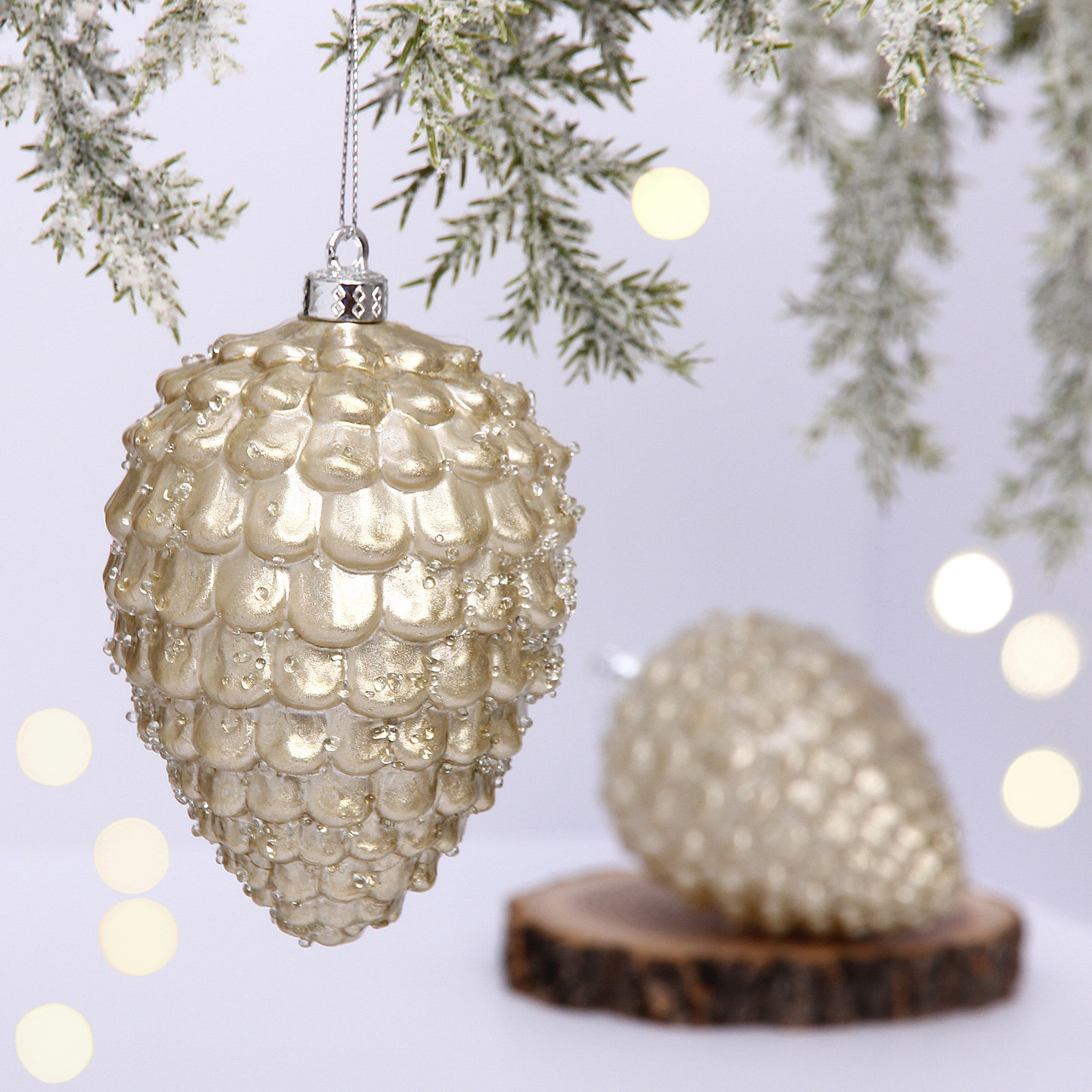 Добавьте волшебства вашему новогоднему декору с набором из двух элегантных шишек цвета шампань. Их благородный переливчатый блеск привнесет в интерьер атмосферу роскоши и уюта.