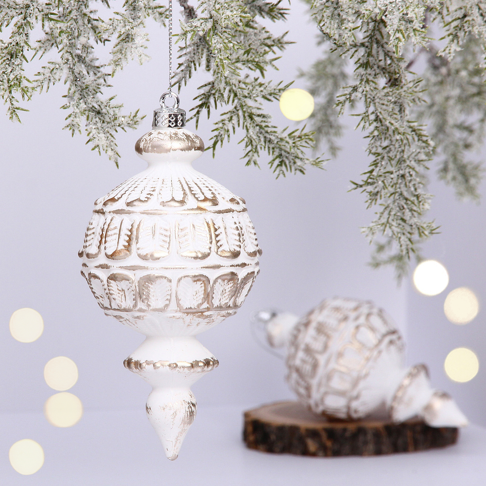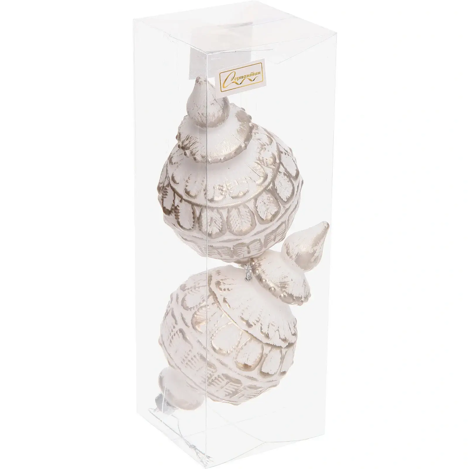 Ёлочные игрушки VERSAILLES «Снежная капля» 16*8 см (набор 2 шт), Белый/шампань, пластик, для елки и декорирования