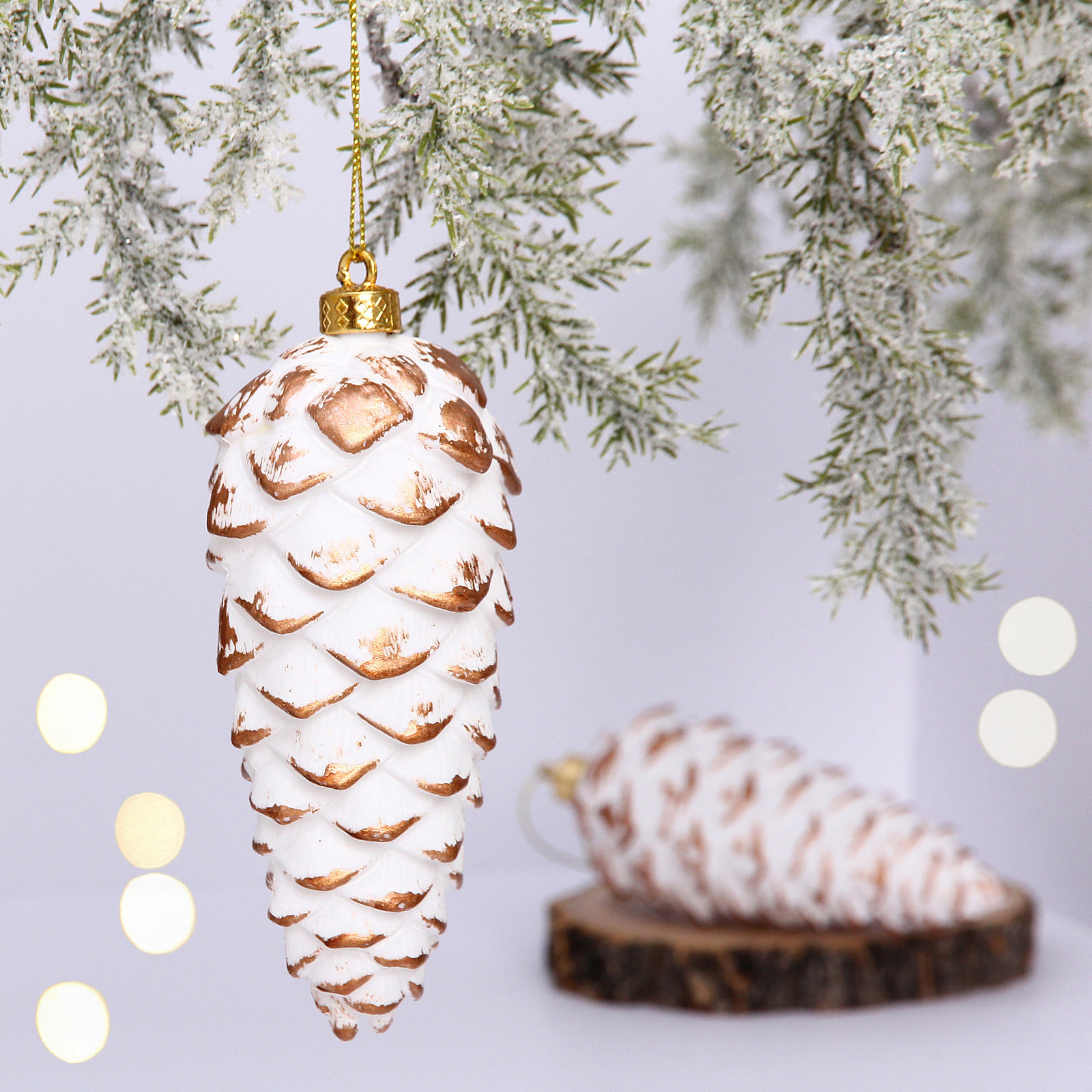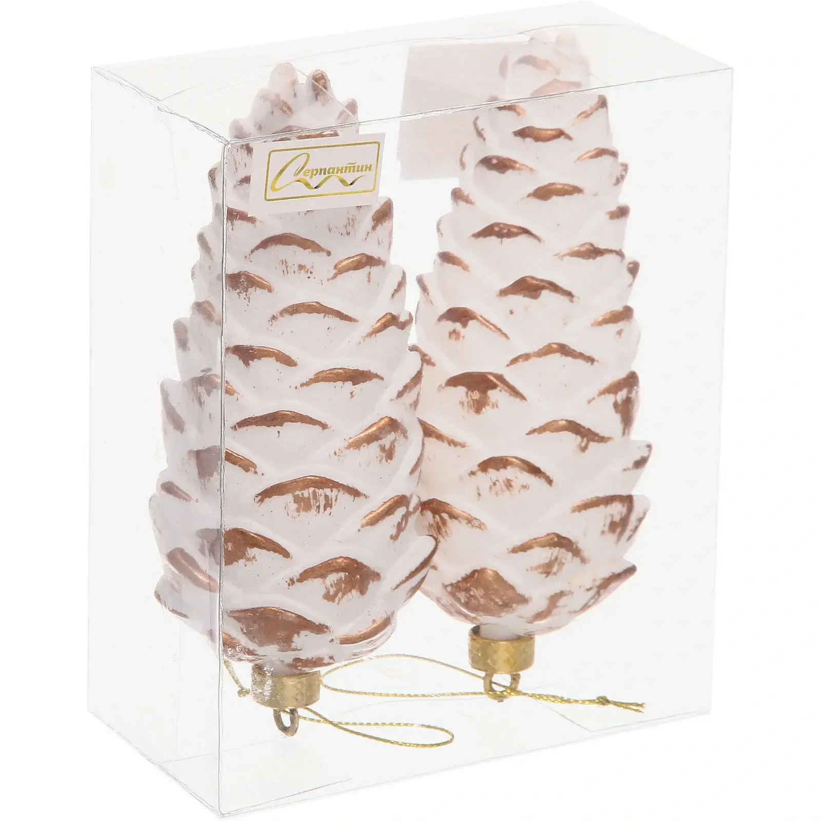 Ёлочные игрушки VERSAILLES «Снежные шишки» 14*6 см (набор 2 шт), Белый/розовое золото, пластик, для елки и декорирования