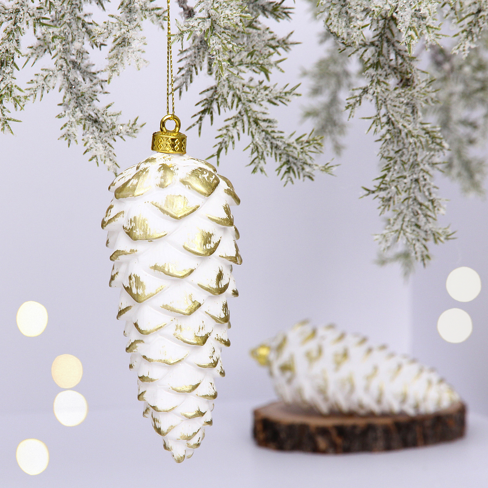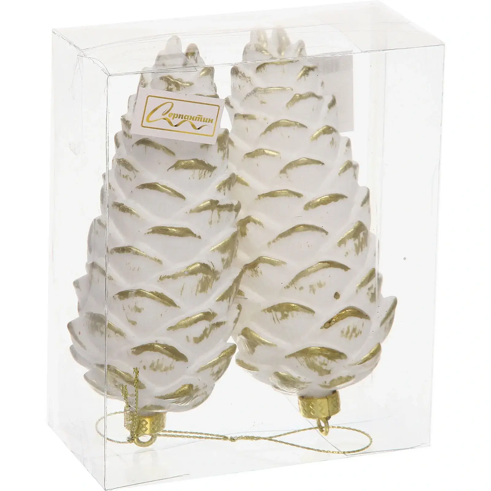 Ёлочные игрушки VERSAILLES «Снежные шишки» 14*6 см (набор 2 шт), Белый/золото, пластик, для елки и декорирования