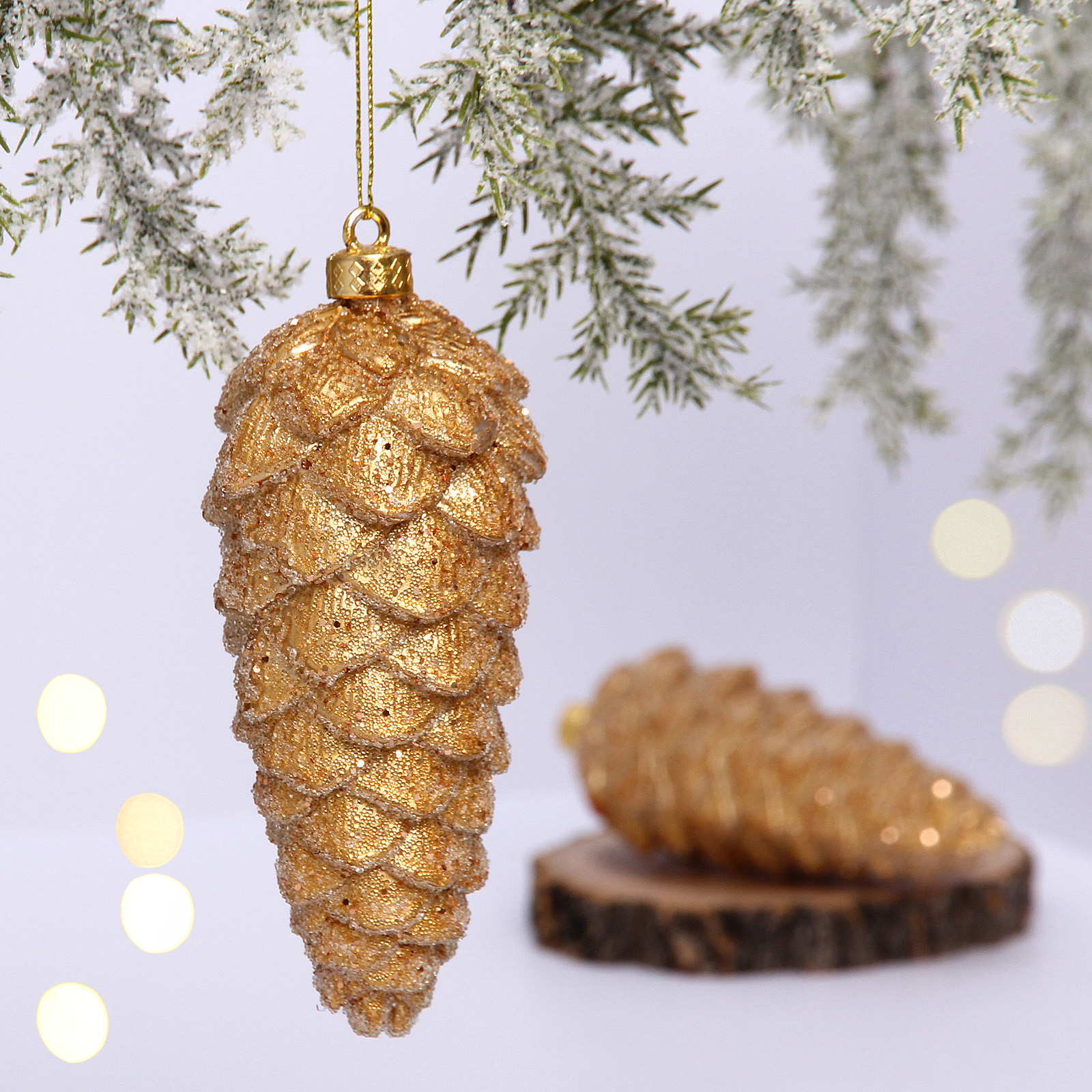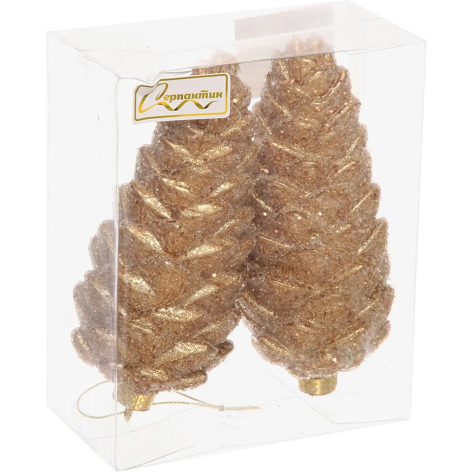 Ёлочные игрушки VERSAILLES «Снежные шишки» 14*6 см (набор 2 шт), Розовое золото, пластик, для елки и декорирования