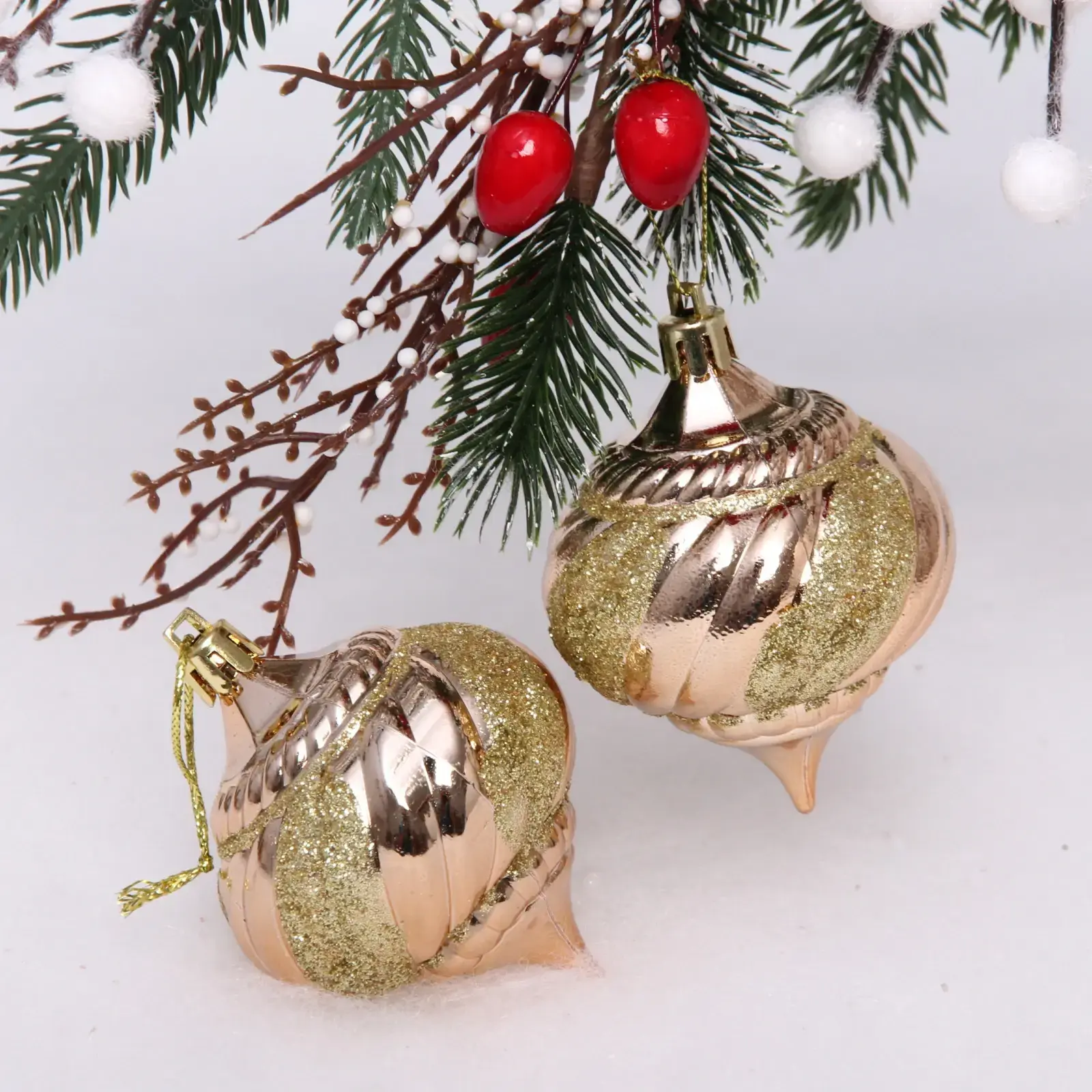 Почему стоит выбрать именно эти игрушки? Во-первых, они выполнены из качественного пластика, что обеспечивает их долговечность и устойчивость к повреждениям. Во-вторых, их блестящая отделка и оригинальный дизайн делают их настоящим украшением для любого праздника. Набор из двух игрушек позволяет создать гармоничное оформление, а их размер в 6 см делает их универсальными для любой ёлки.