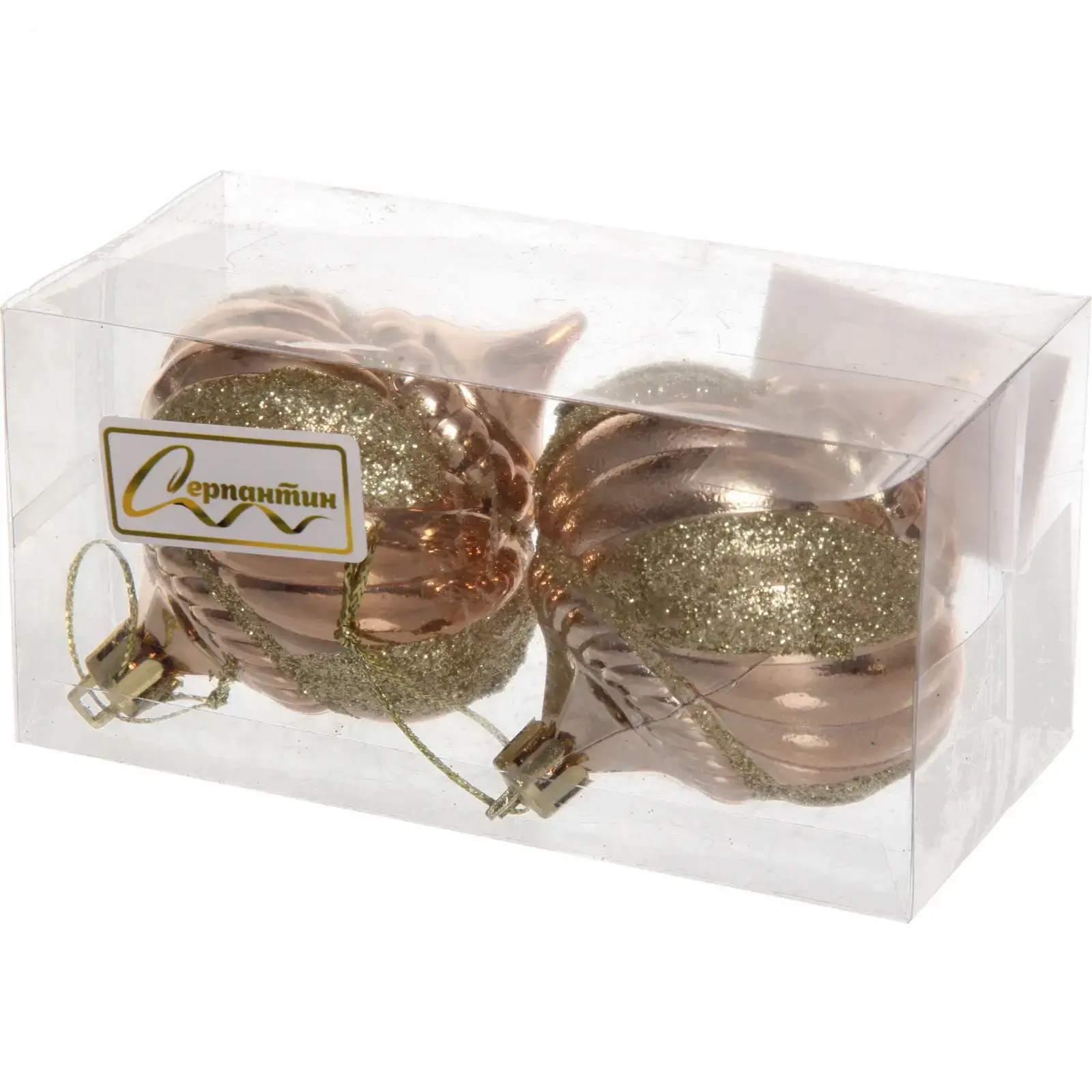 Каждая игрушка имеет размер 6 см и выполнена в нежном шампань цвете с золотистыми элементами. Они упакованы в прозрачную коробку, что позволяет легко их хранить и демонстрировать. Эти игрушки станут отличным подарком для друзей и близких, а также прекрасным дополнением к вашему новогоднему декору.