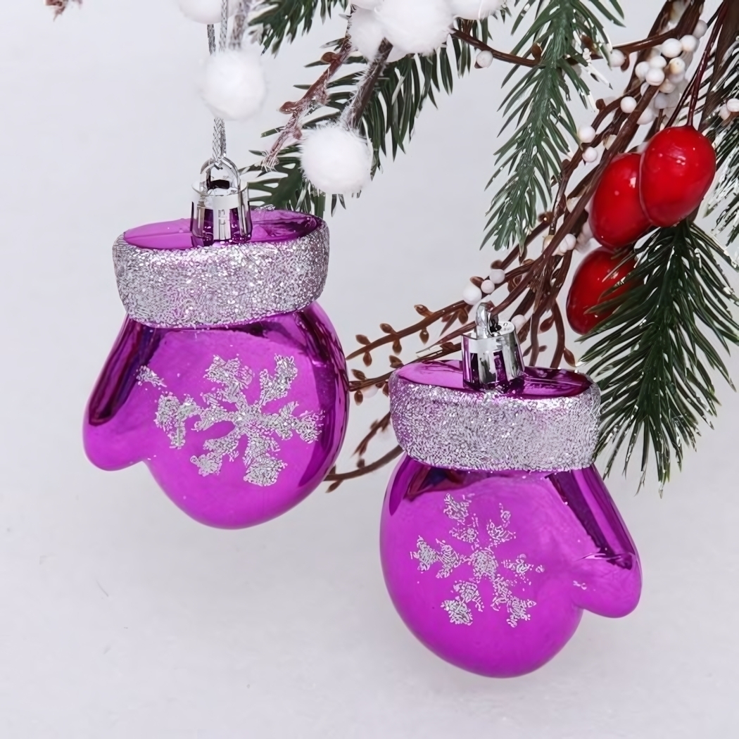 Ёлочные игрушки "Волшебные варежки" фиолетовые, набор 2 шт, 6 см, пластик