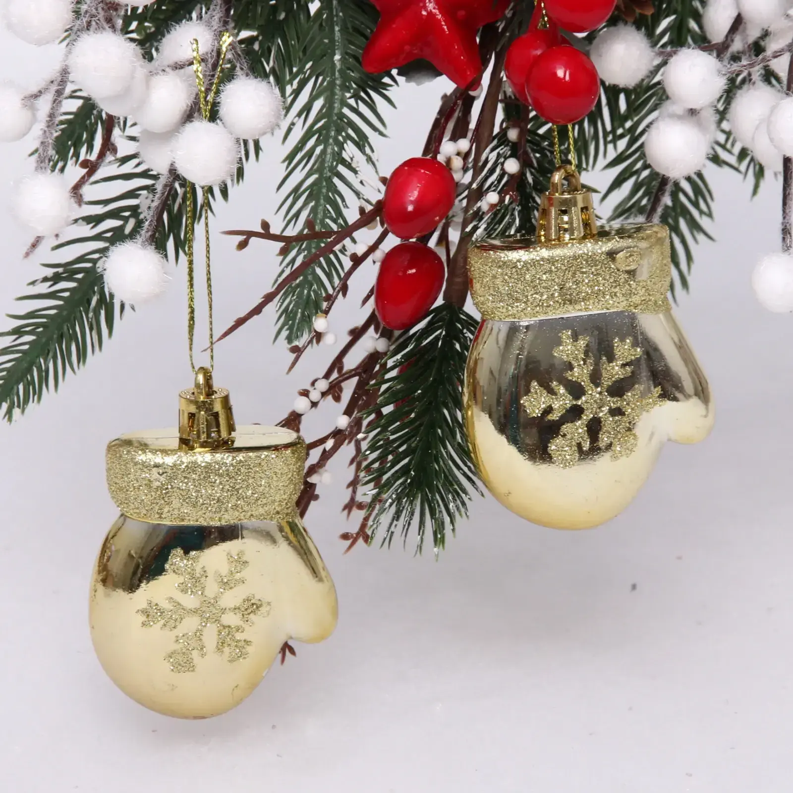 Размер каждой варежки составляет 6 см, что делает их идеальными для любой ёлки. Изготовлены из прочного пластика, они не только красивы, но и безопасны для детей. Золотистый цвет и блестящие элементы делают эти игрушки настоящим украшением вашего праздника.
