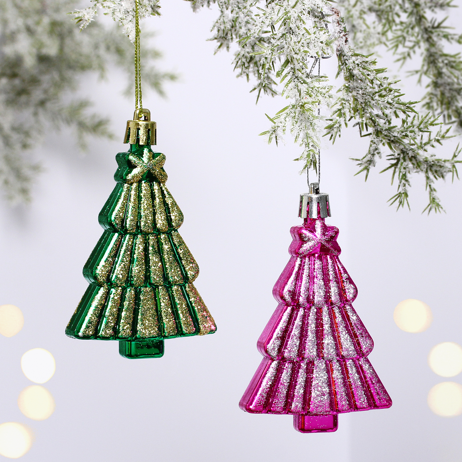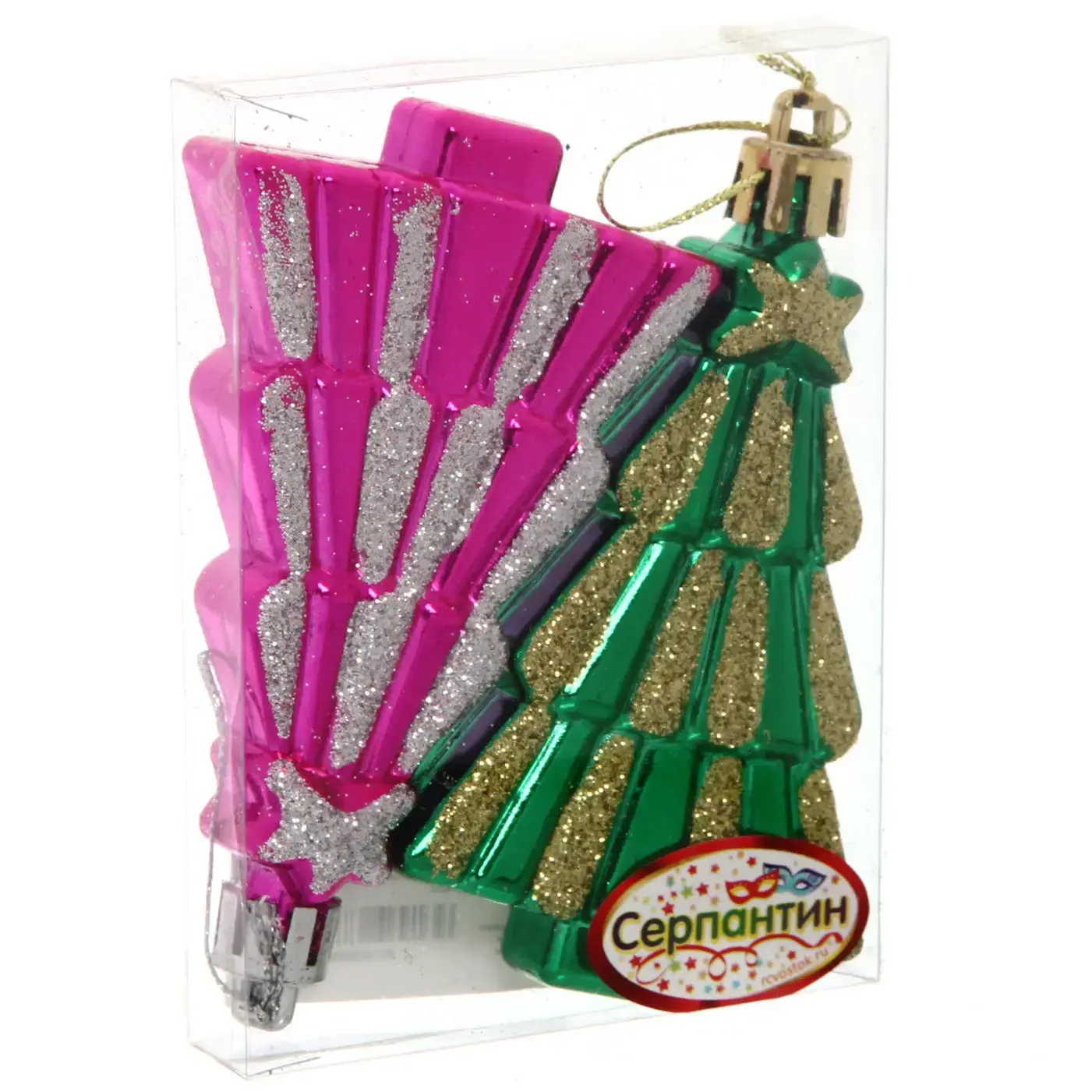 Ёлочные игрушки «Ёлочки праздничные» 8см микс цветов (набор 2 шт), пластик, для елки и декорирования