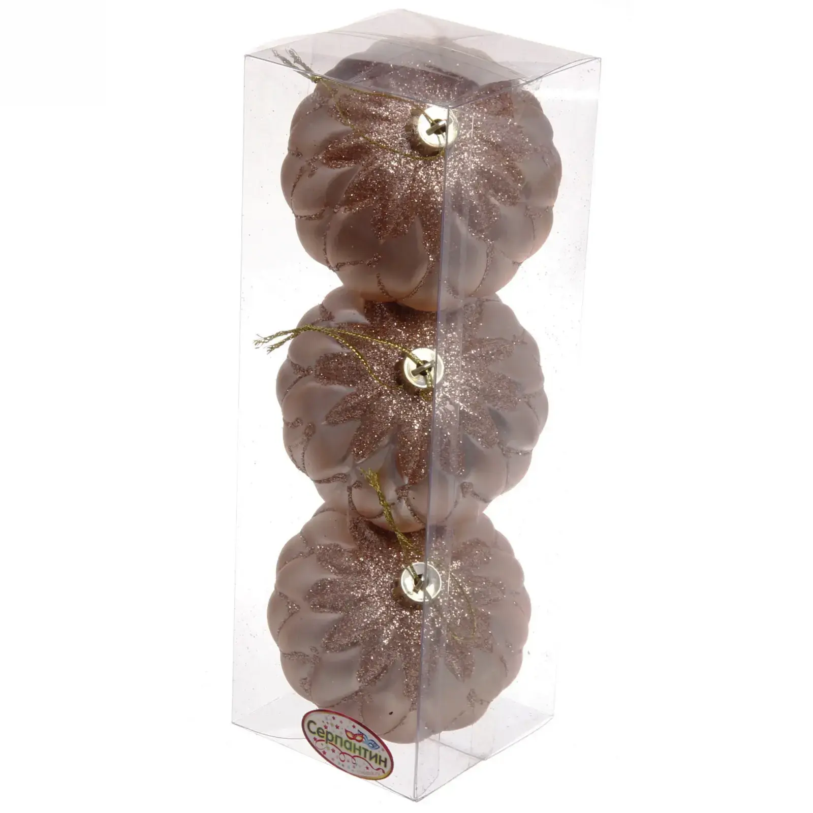 Ёлочные игрушки «Юла» 8 см (набор 3 шт), шампань, пластик, для елки и декорирования
