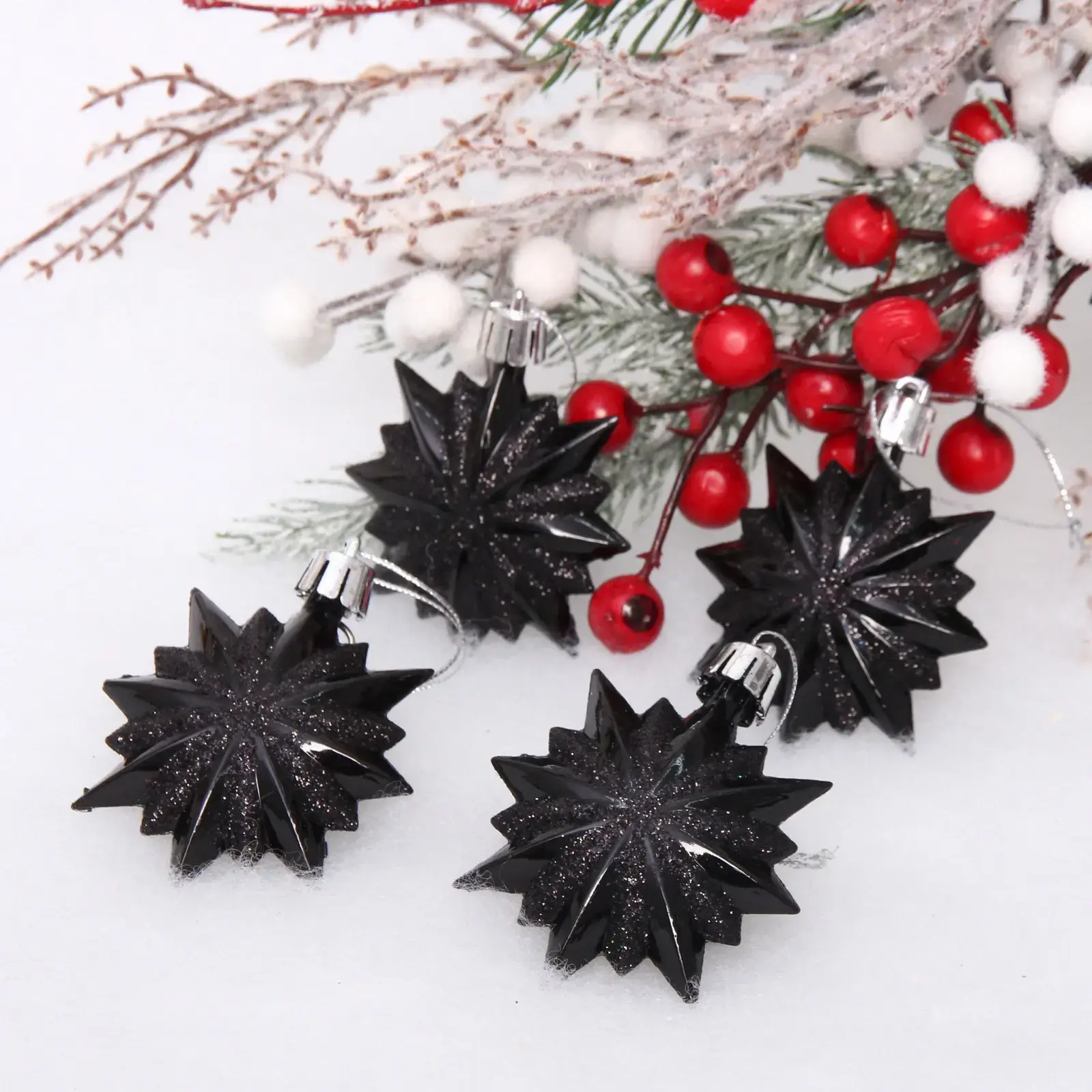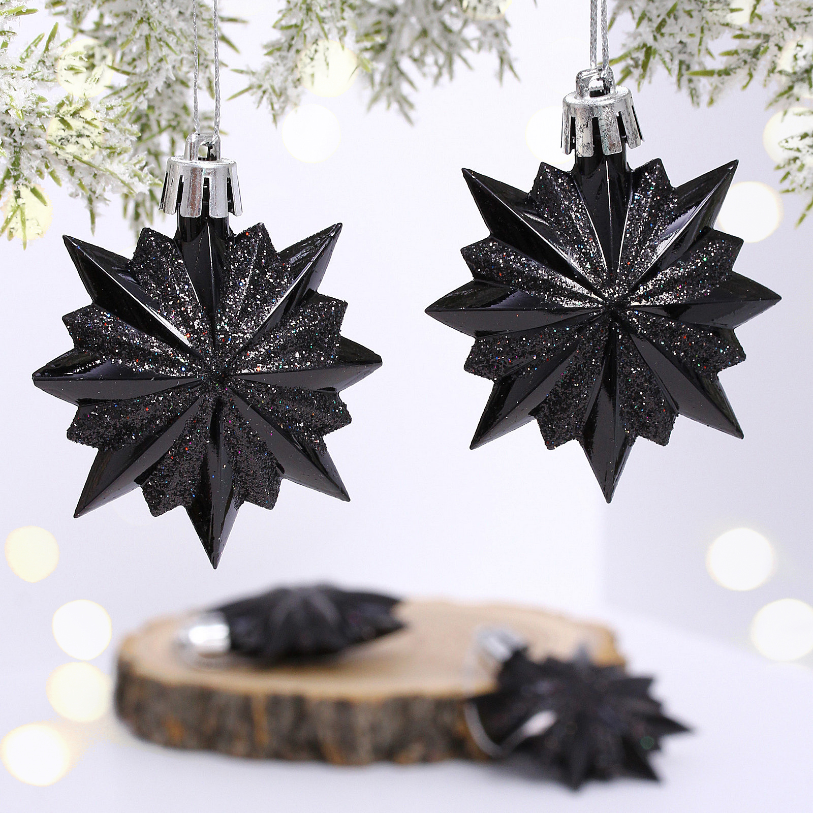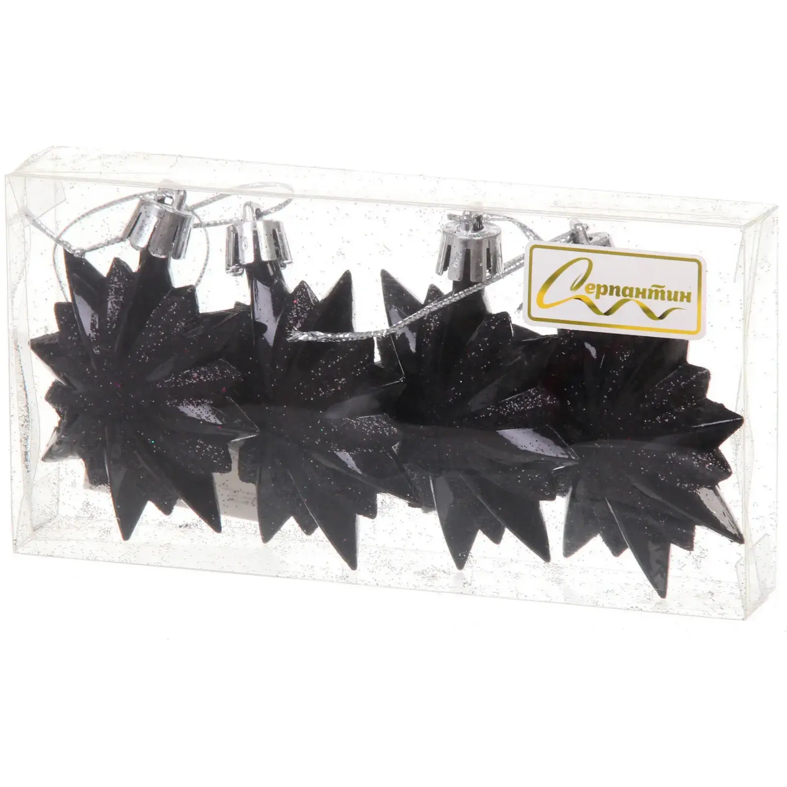 Почему стоит выбрать именно эти ёлочные игрушки? Во-первых, их уникальный дизайн в форме звезды с острыми лучами и блестящей текстурой привлекает внимание и создает эффект сияния. Во-вторых, набор из 4 штук позволяет создать гармоничное оформление, а черный цвет легко сочетается с другими элементами декора. Эти игрушки не только красивы, но и долговечны, так как изготовлены из качественного пластика, что гарантирует их сохранность на протяжении многих сезонов.