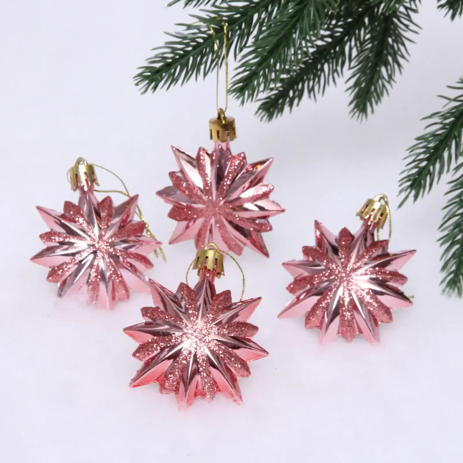 Ёлочные игрушки «Таинственное очарование» Звезда остроконечная 6 см (набор 4 шт), розовое золото, пластик, для елки и декорирования