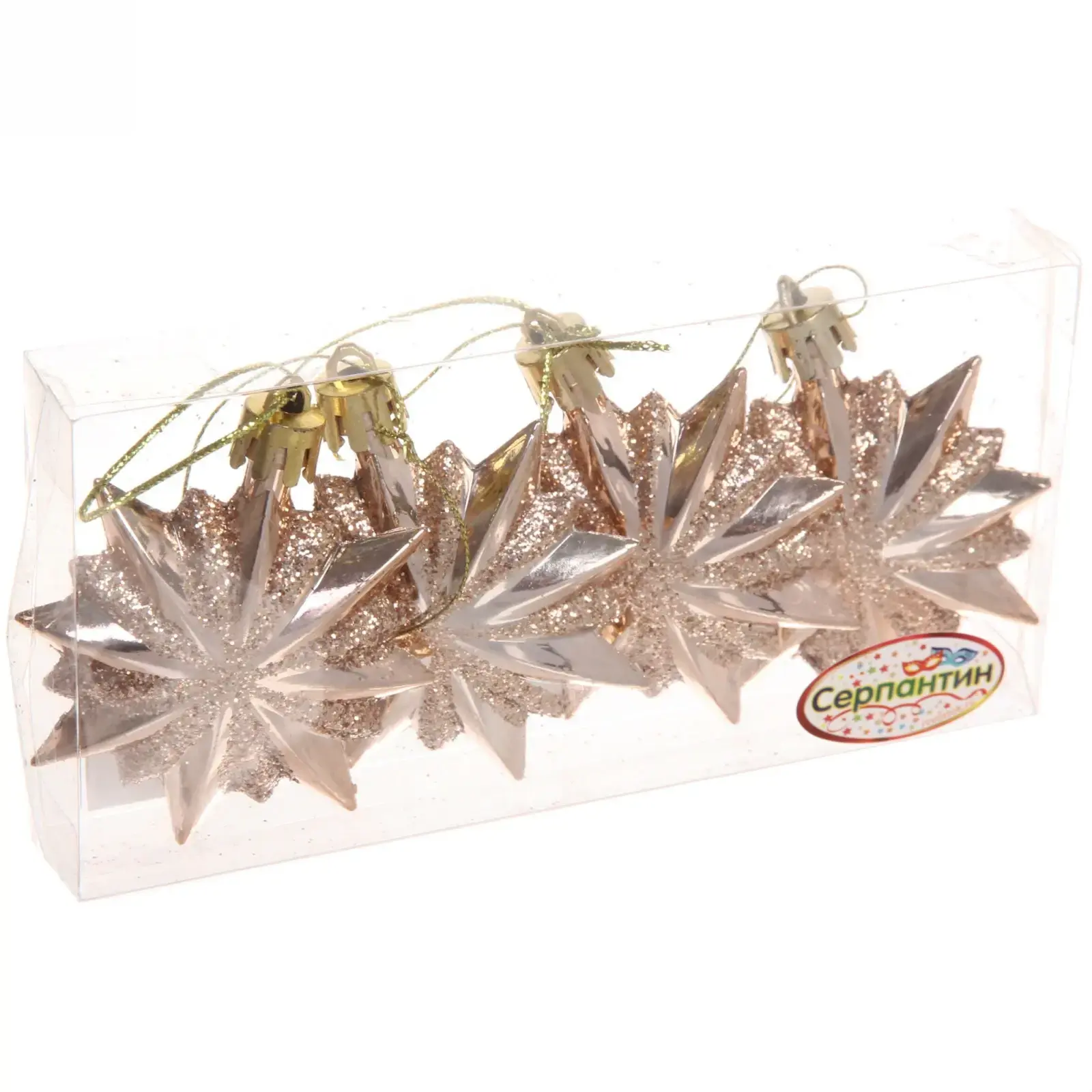Ёлочные игрушки «Таинственное очарование» Звезда остроконечная 6 см (набор 4 шт), шампань, пластик, для елки и декорирования