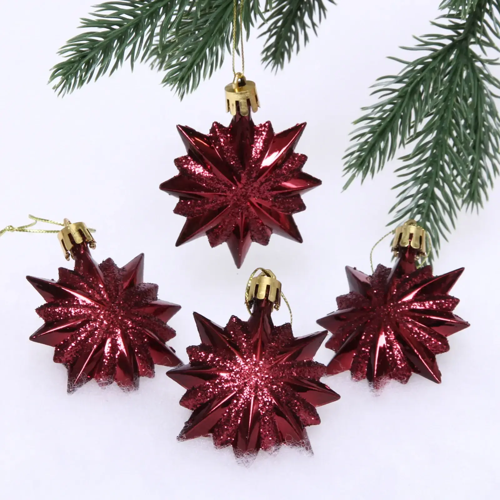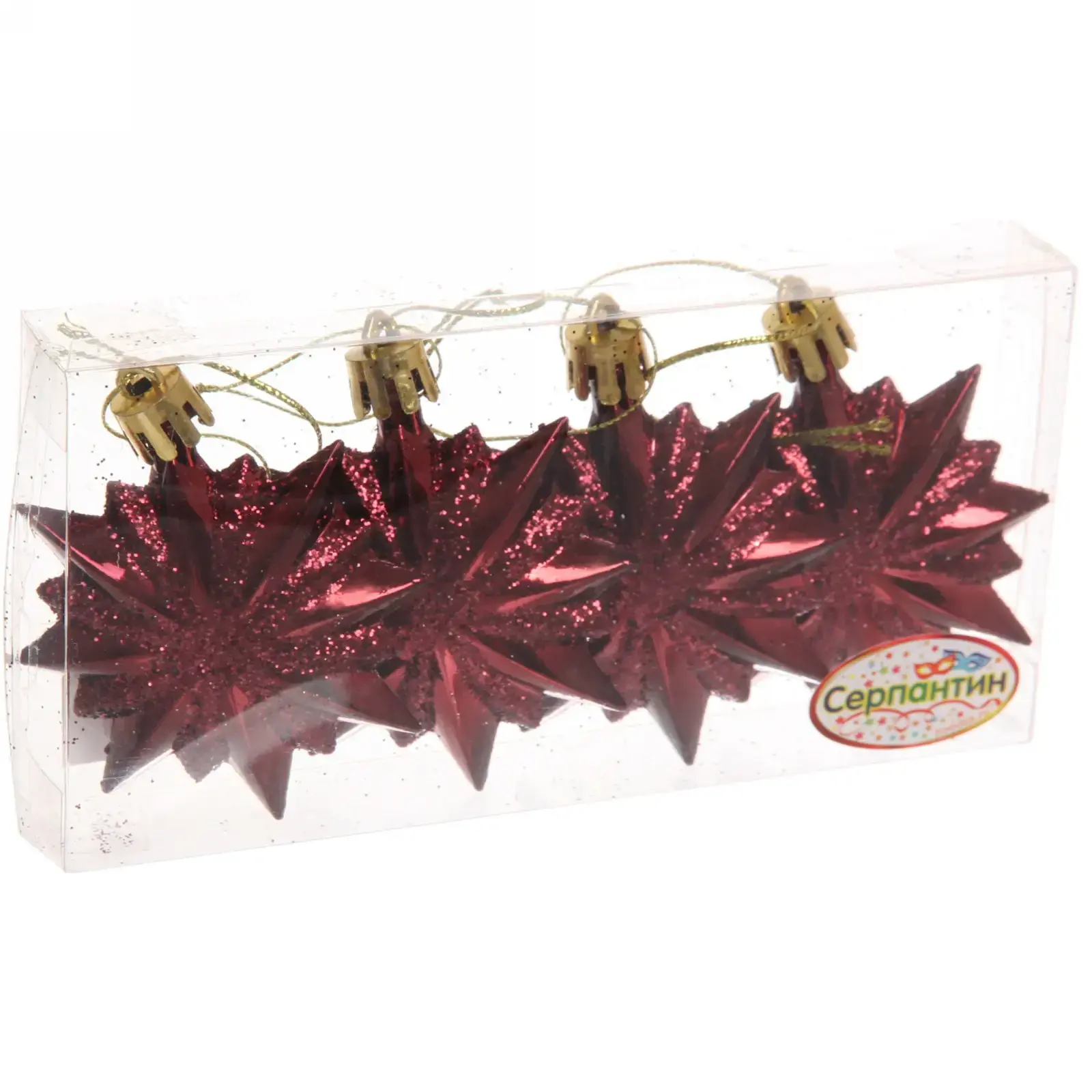 Ёлочные игрушки «Таинственное очарование» Звезда остроконечная 6 см (набор 4 шт), темный рубин, пластик, для елки и декорирования