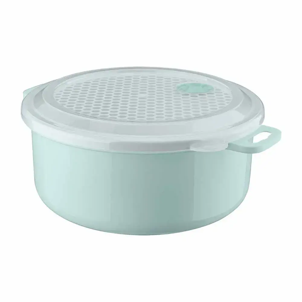 Ёмкость круглая для холодильника и микроволновой печи 1,8л, светло-голубой, с клапаном и ручками, пластик