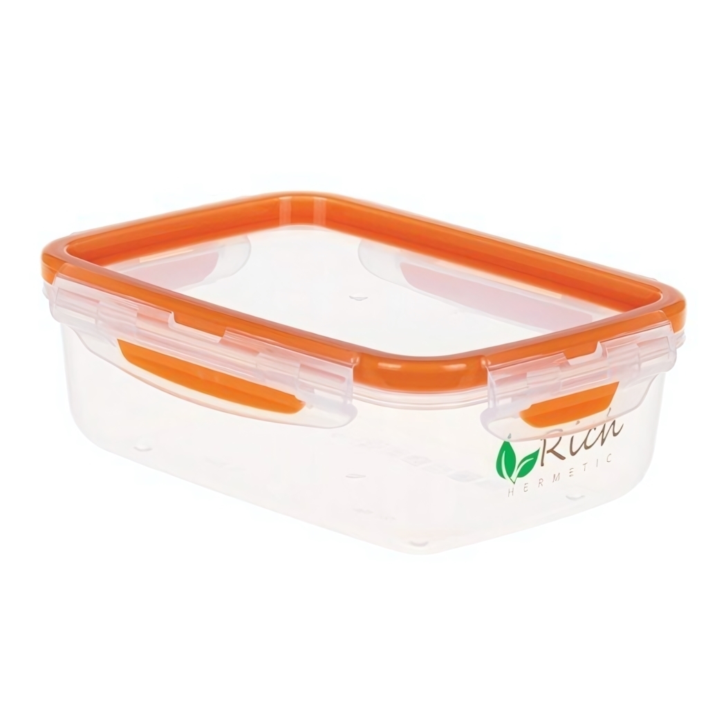 Контейнер герметичный "Rich" 0,8 л, прямоугольный, прозрачный корпус, оранжевые замки