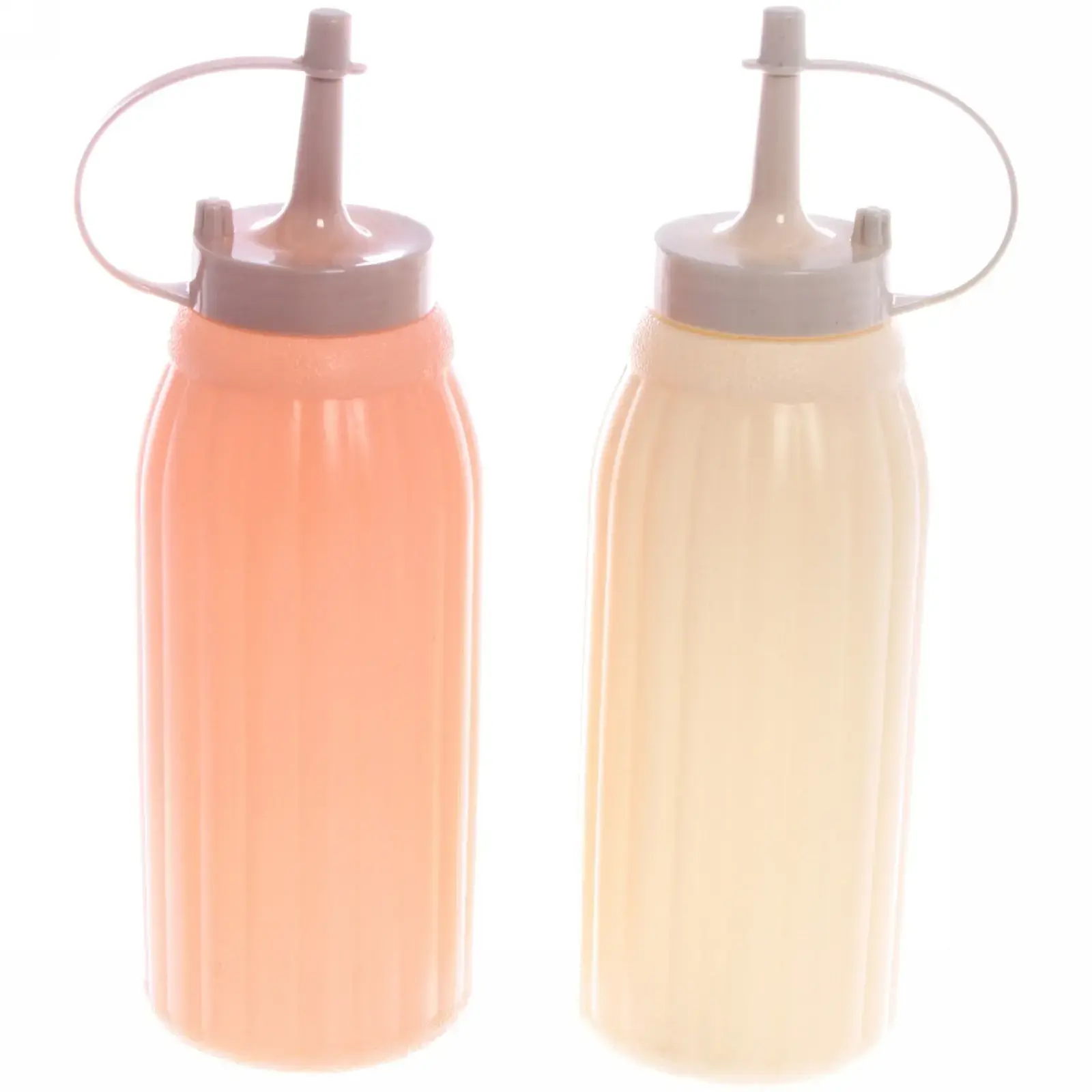 Ёмкости предназначены для хранения различных соусов, таких как кетчуп, майонез и другие приправы. Они оснащены удобными крышками с носиками, что позволяет легко наливать соус без лишних хлопот. Контейнеры имеют округлую форму и рифленую поверхность, что обеспечивает надежный захват и предотвращает скольжение в руках.