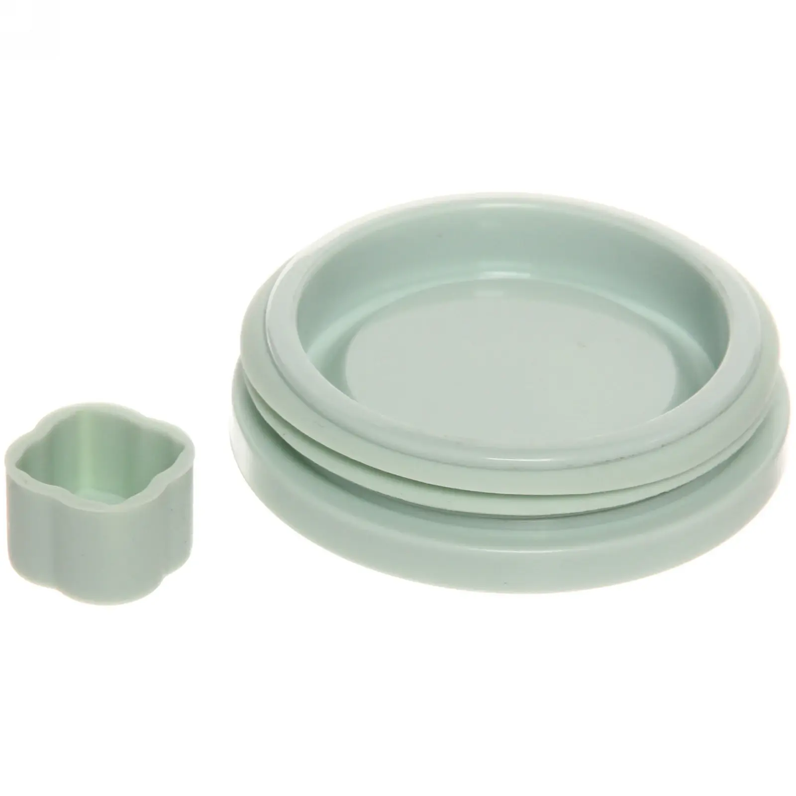 Размеры ёмкости составляют 14,9 см в высоту, 9 см в ширину и 13,6 см в глубину. Изготовлена из качественного стекла, что обеспечивает долговечность и лёгкость в уходе. Крышка выполнена из пластика светло-зелёного цвета, что гармонично сочетается с прозрачным телом ёмкости.