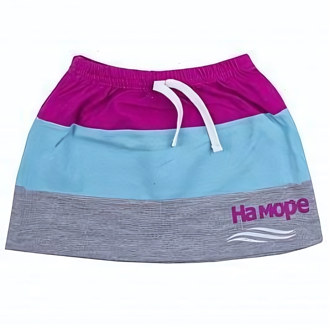 Эта юбка станет любимой частью гардероба вашей девочки, сочетая мягкость 100 % хлопка и практичность эластичного пояса с удобным шнурком. Яркие трёхцветные полосы – фиолетовый, голубой и серый – дарят возможность выделиться и добавить нотку игривости в любой образ.