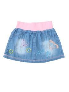 Юбка джинсовая для девочки, размер 98, голубая с вышивкой 'Believe', розовый пояс, 100% хлопок (Bonito)