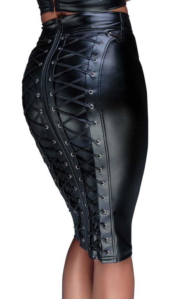 Эта юбка-карандаш станет вашим идеальным выбором для создания стильного и сексуального образа. С захватывающим дизайном и уникальной шнуровкой сзади, она подчеркивает ваши формы и добавляет нотку дерзости в любой наряд. Изготовленная из высококачественного материала, юбка обладает эффектом wet-look, что делает ее особенно привлекательной.
