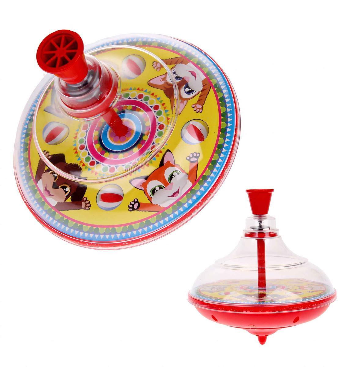 - Яркий дизайн: Прозрачный купол позволяет видеть внутренний разноцветный рисунок с весёлыми мордочками животных и геометрическими узорами, которые создают завораживающий визуальный эффект при вращении.