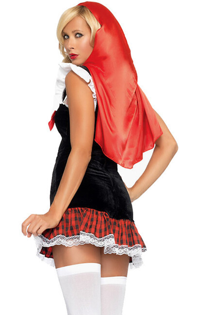 Погрузитесь в атмосферу волшебства и романтики с костюмом "Юная красная шапочка". Этот наряд станет идеальным выбором для тематической вечеринки, Хэллоуина или косплея. Платье выполнено в черном цвете с яркими красными деталями и белым кружевом, что придаёт ему особый шарм и привлекательность. Красный капюшон добавляет загадочности и завершает образ, делая его незабываемым.