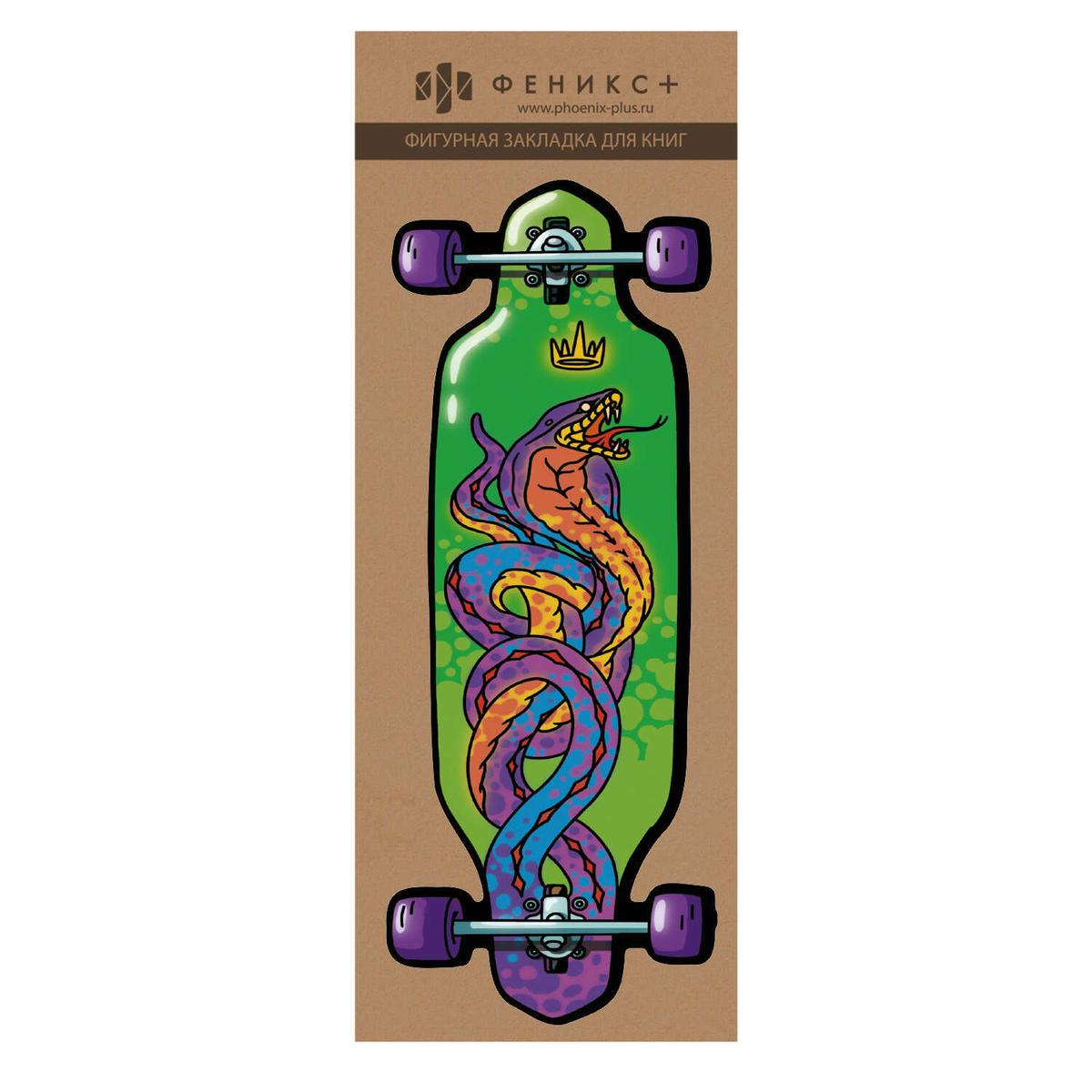 Фигурная закладка 'Лонгборд' станет вашим надежным помощником в мире книг. Яркий дизайн с изображением змей и необычная форма скейтборда делают ее настоящим произведением искусства.